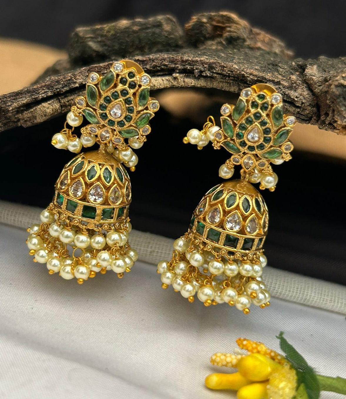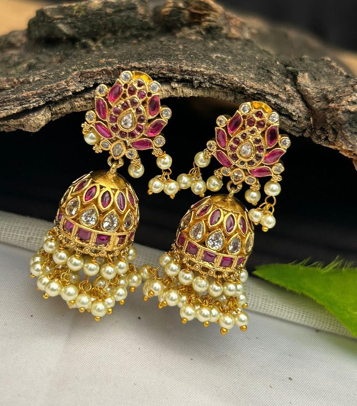 Gold plated Classic Bluetooth Jhumka Earrings with cz stones