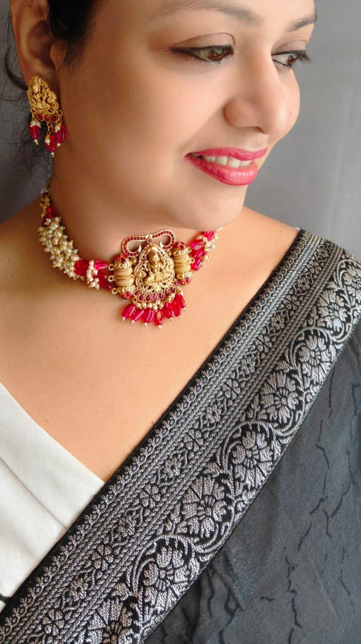 Temple design Necklace Laxmi motif double layer