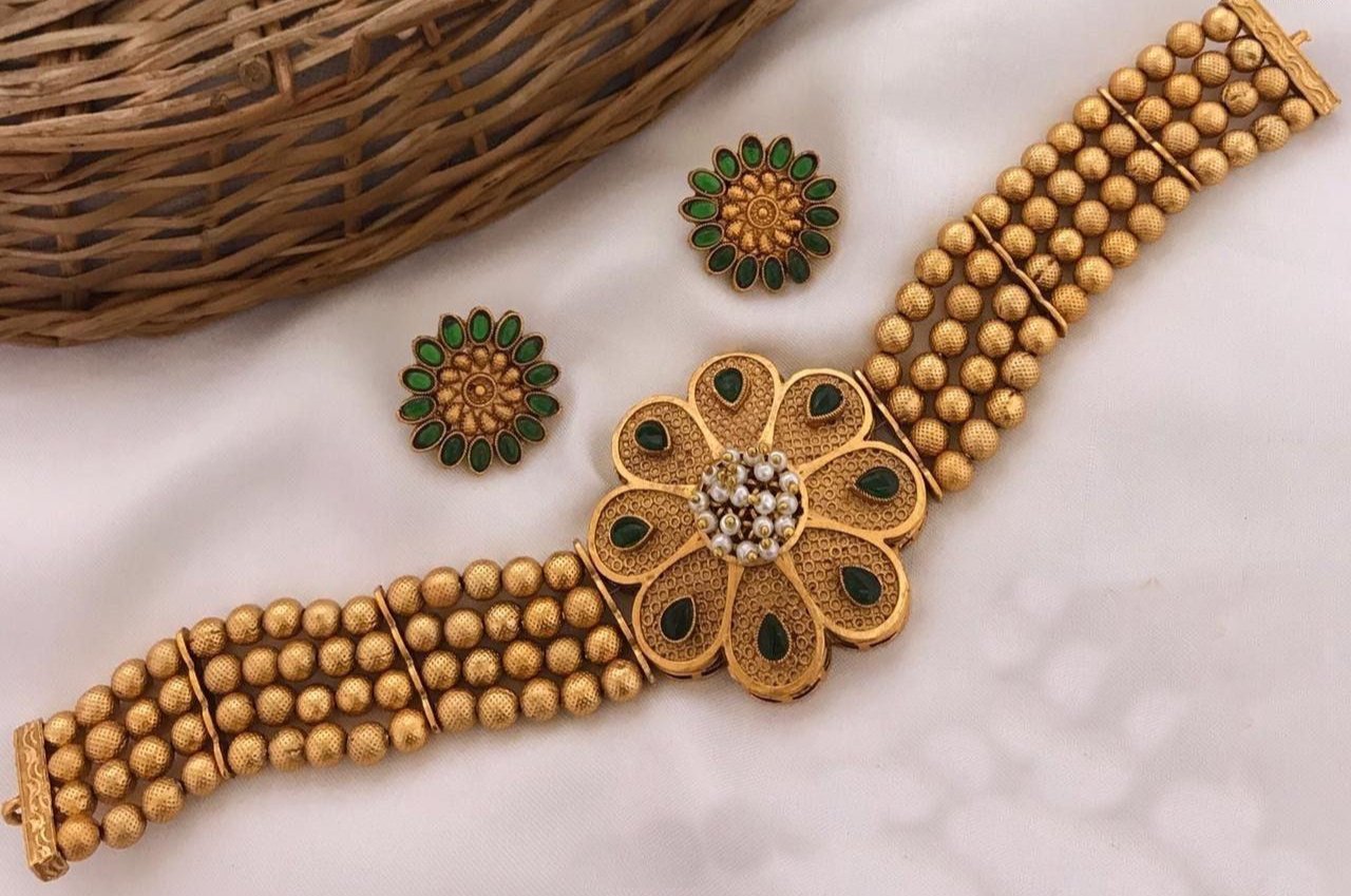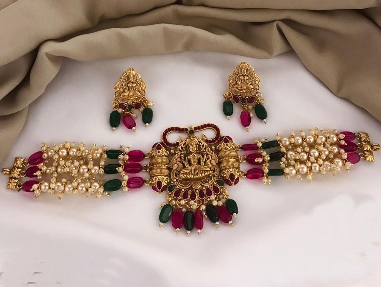 Exclusive Signature Collection Real Kemp Ruby Green studded Choker Necklace Set