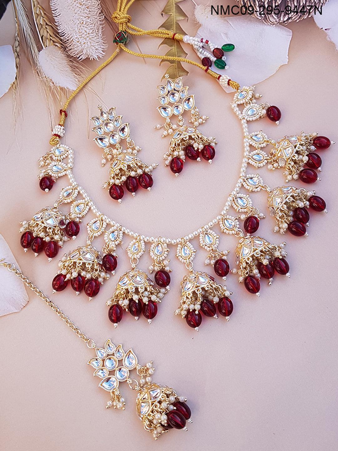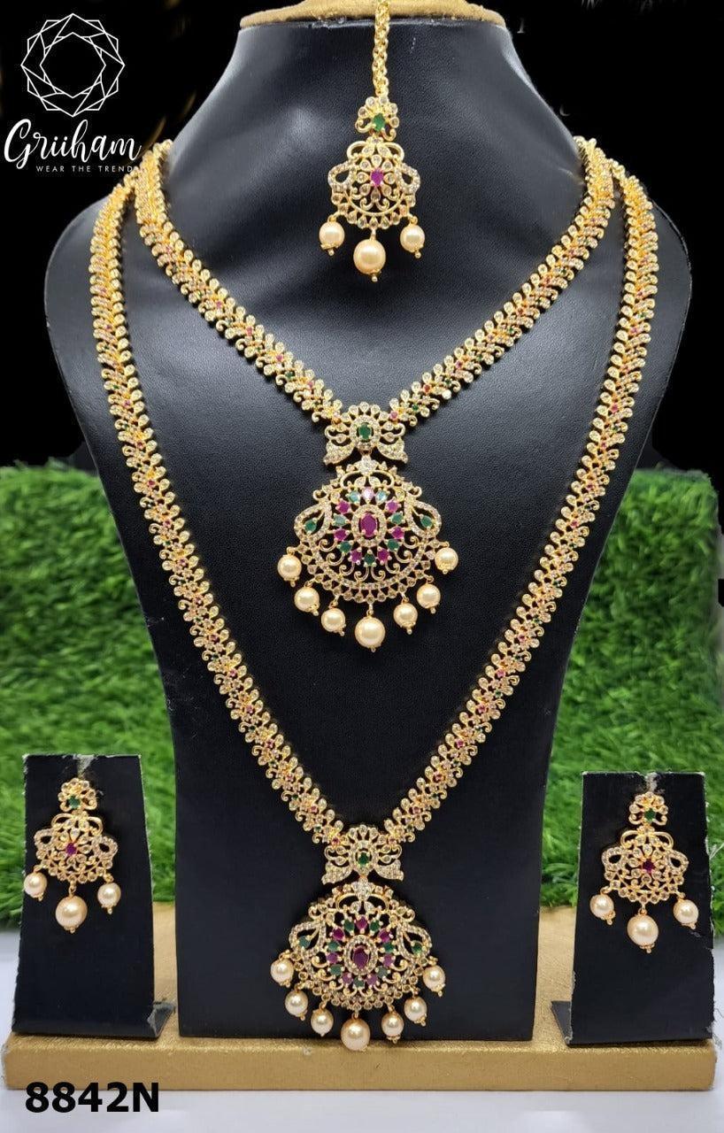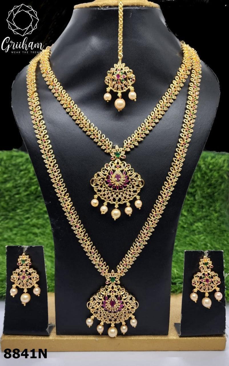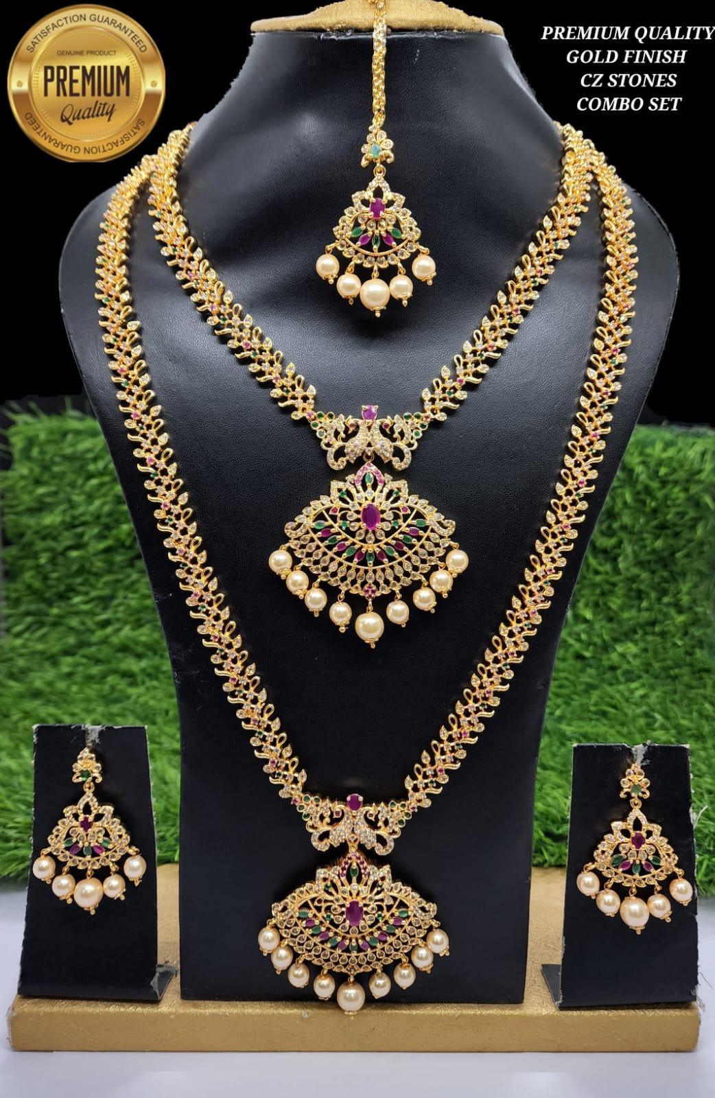 Premium Gold Finish Bridal Set Combo Necklace with Tikka