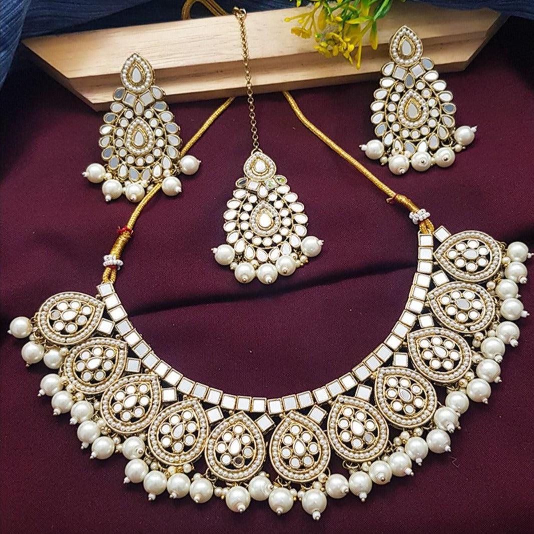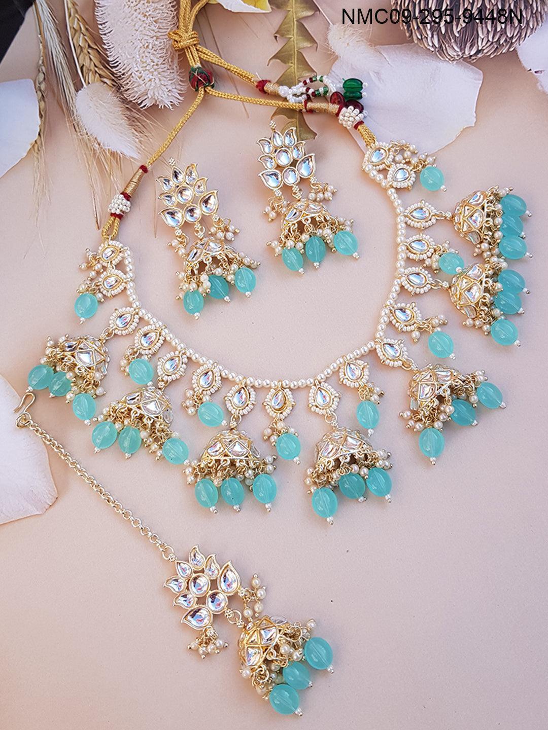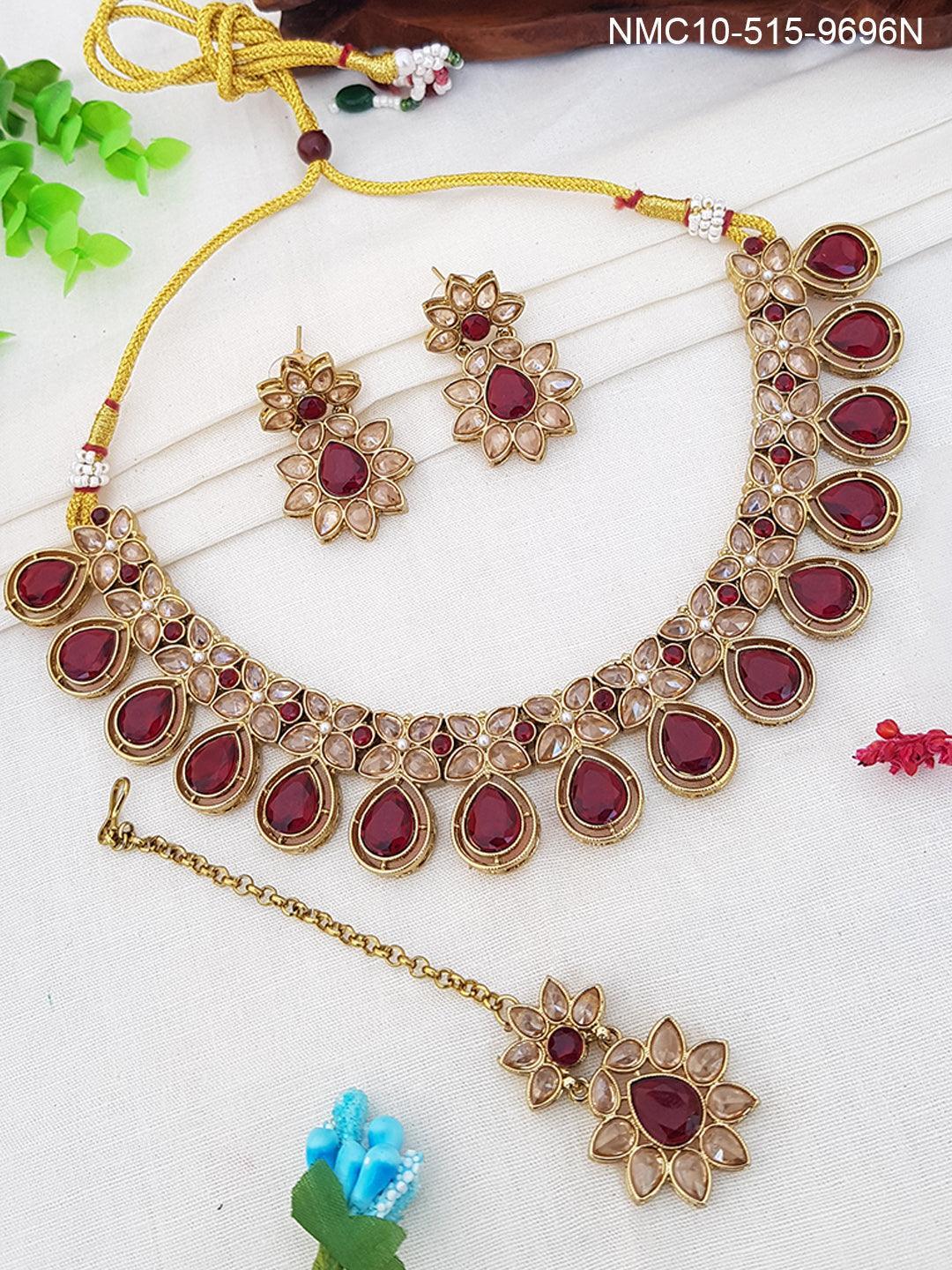 Premium Gold Finish Bridal Set Combo Necklace with Tikka