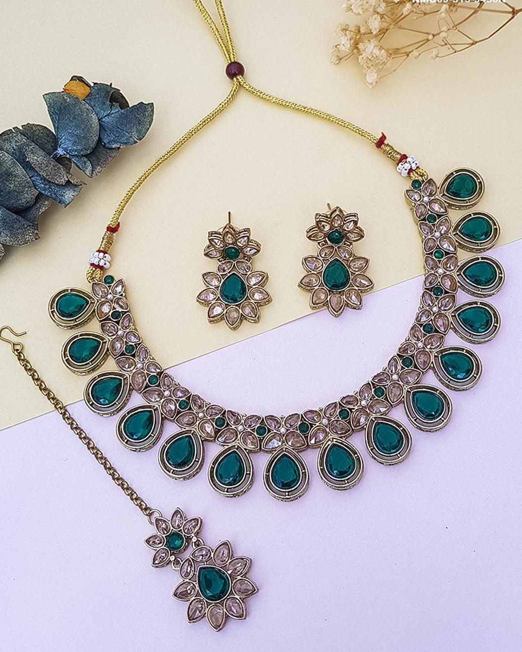 Victorian polish Ambani inspired emerald necklace set chain with Monalisa stone