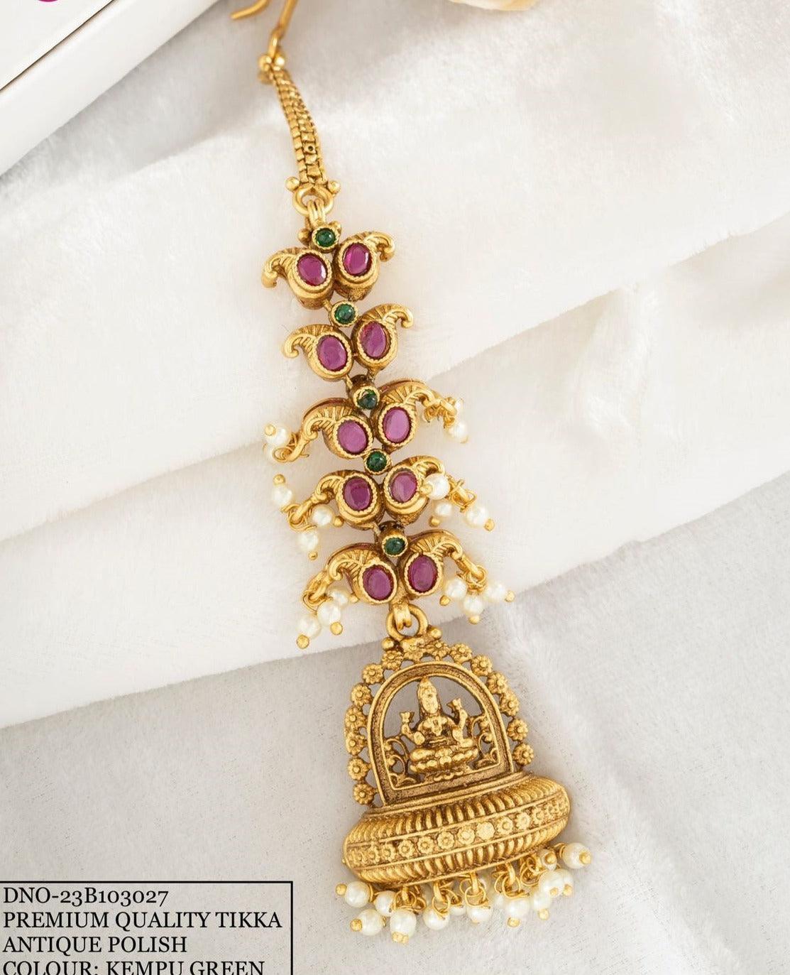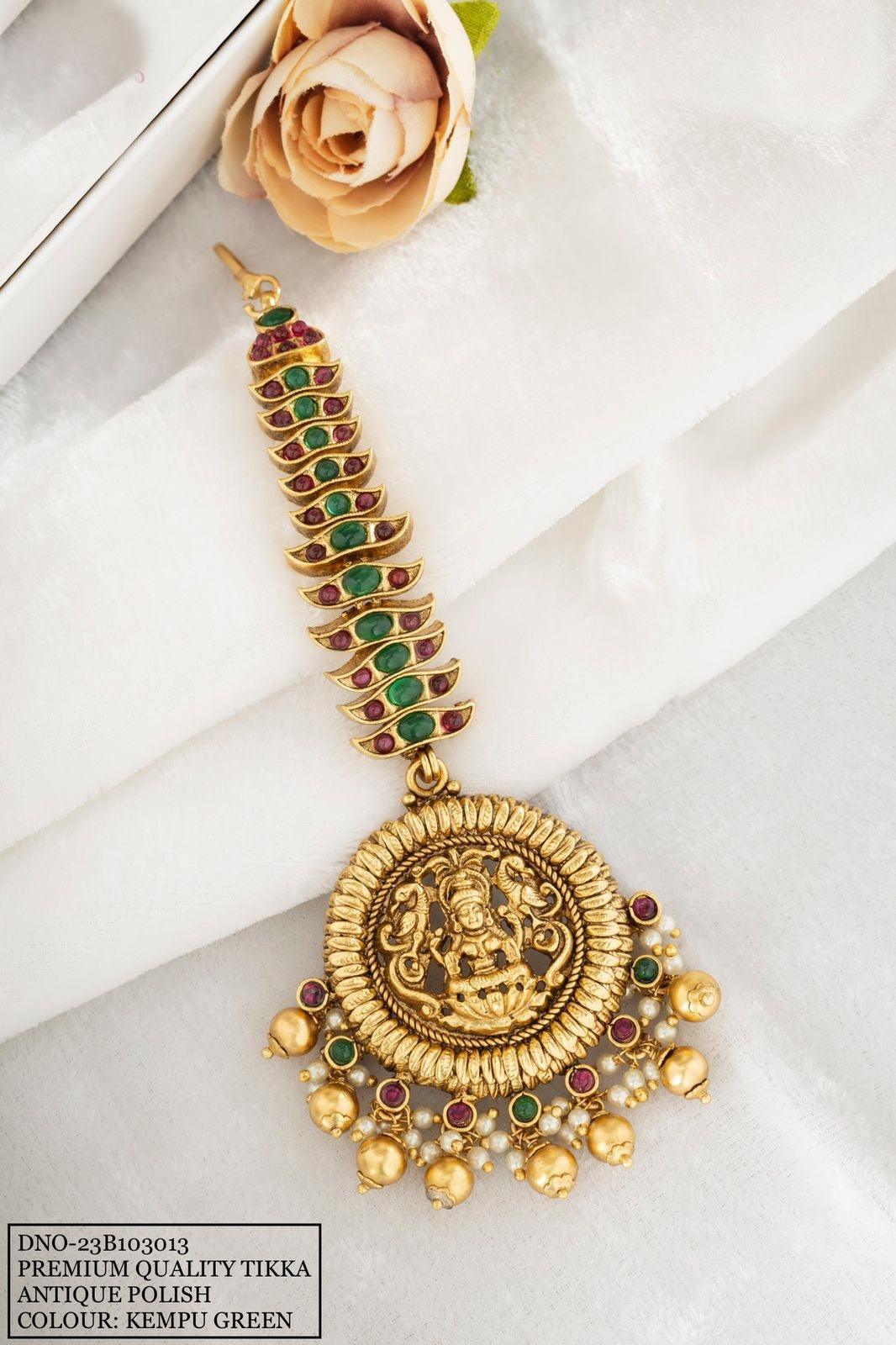 Antique Gold Finish Hair Accessory Damini/Tikka Bridal Wear 10752N - Griiham