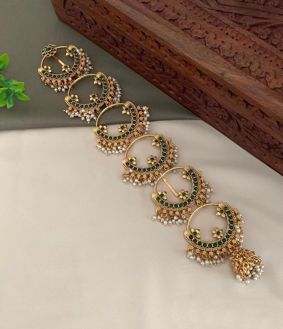 Gold plated Emerald Faux stone Studded Hair Pin Amboda Rakhdi