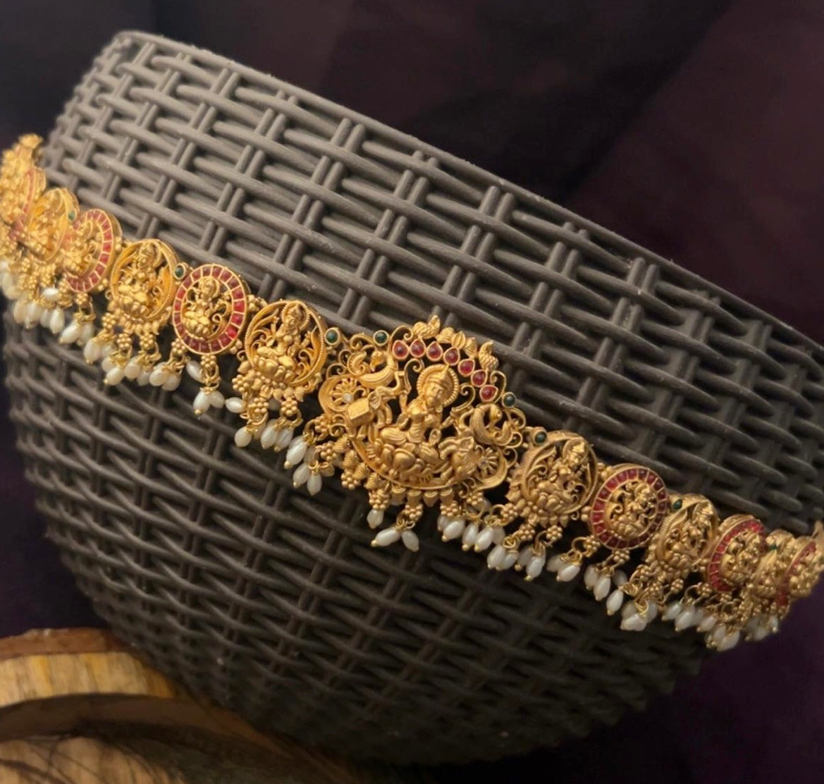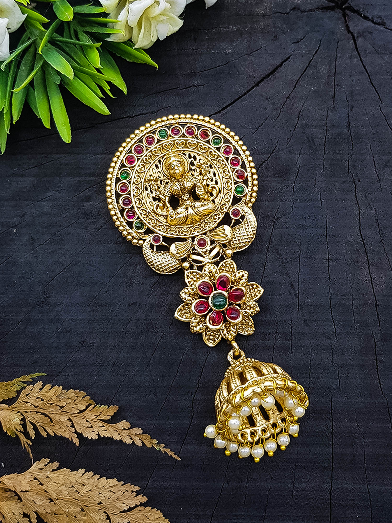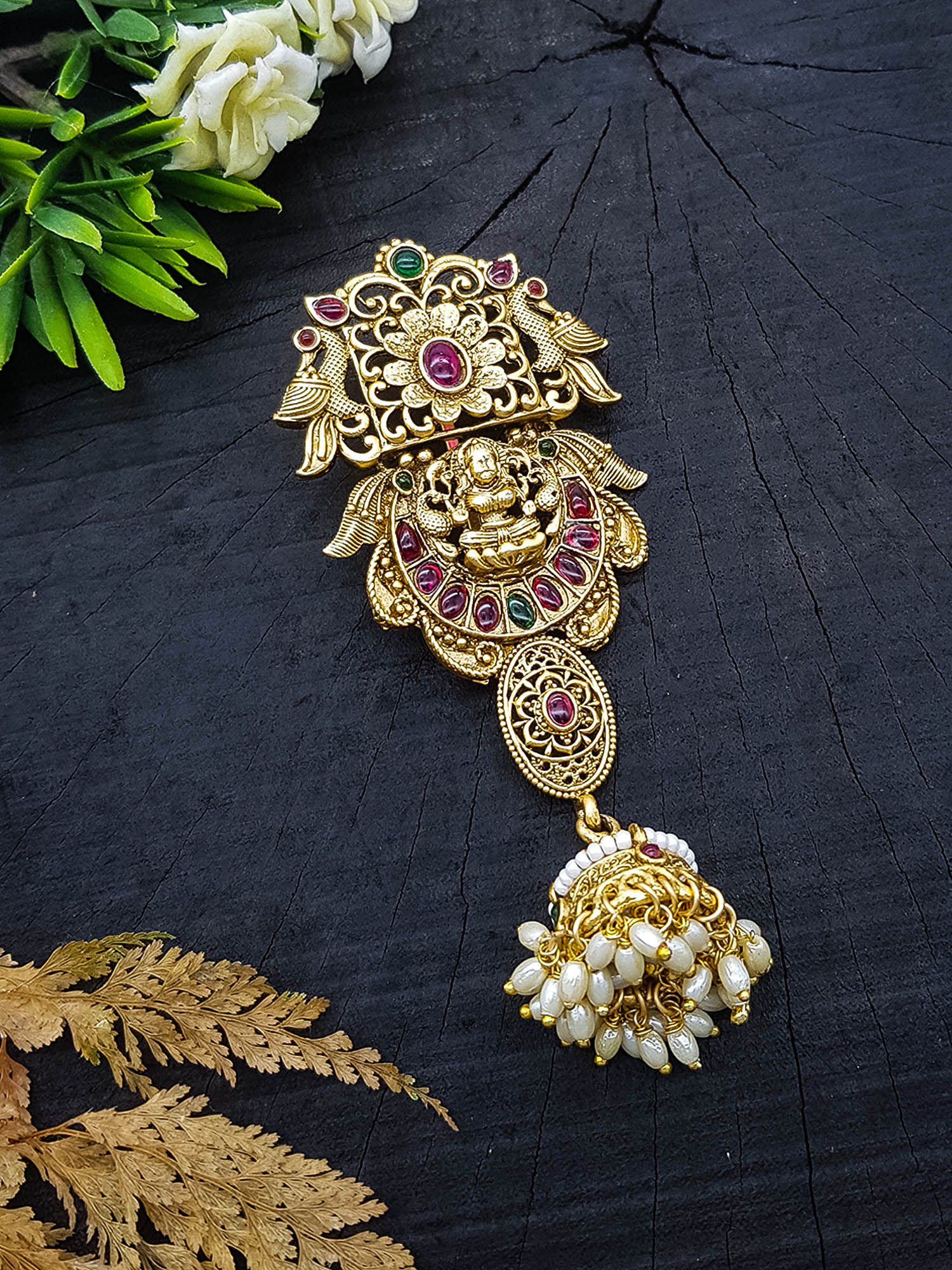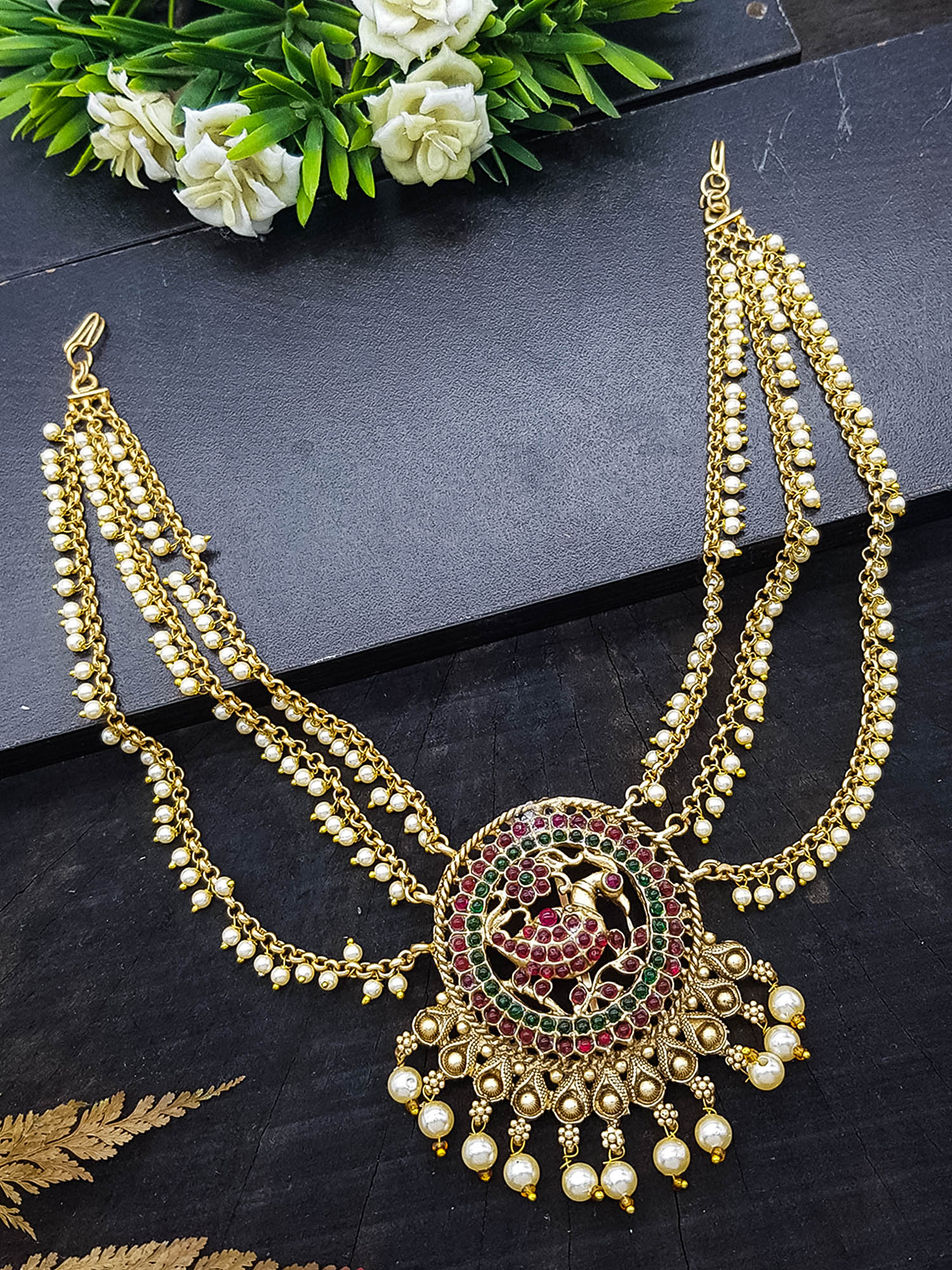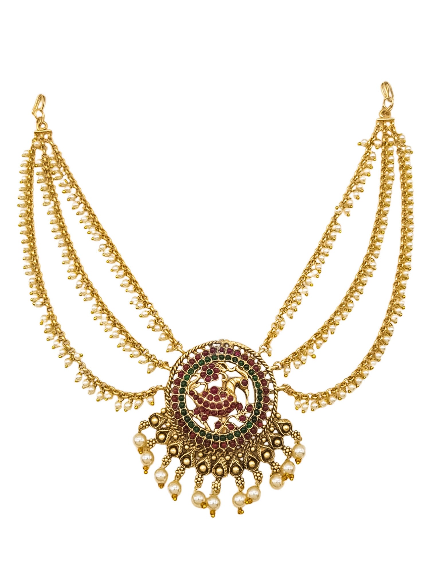 Victorian polish Ambani inspired emerald necklace set chain with Monalisa stone 24020N