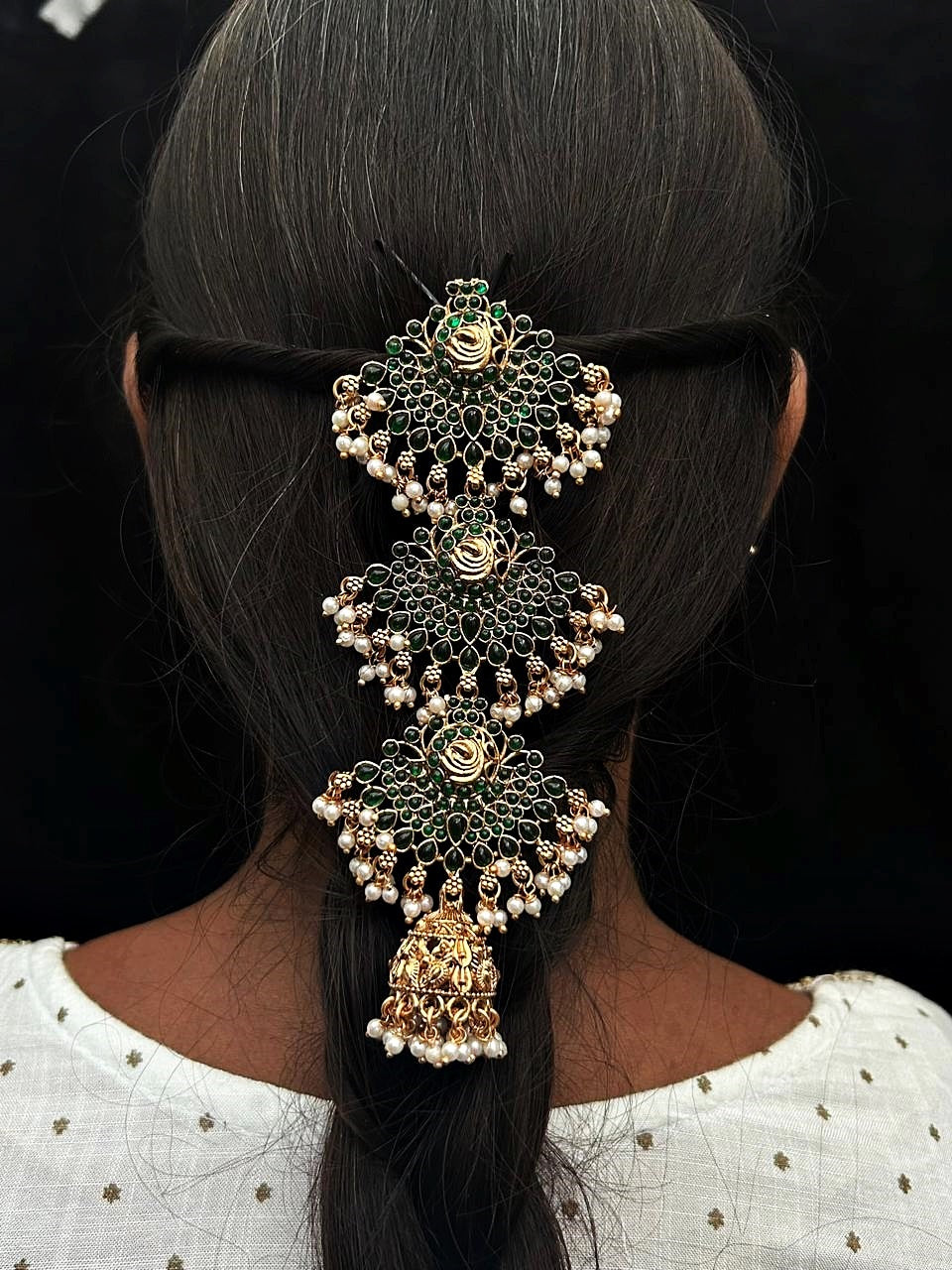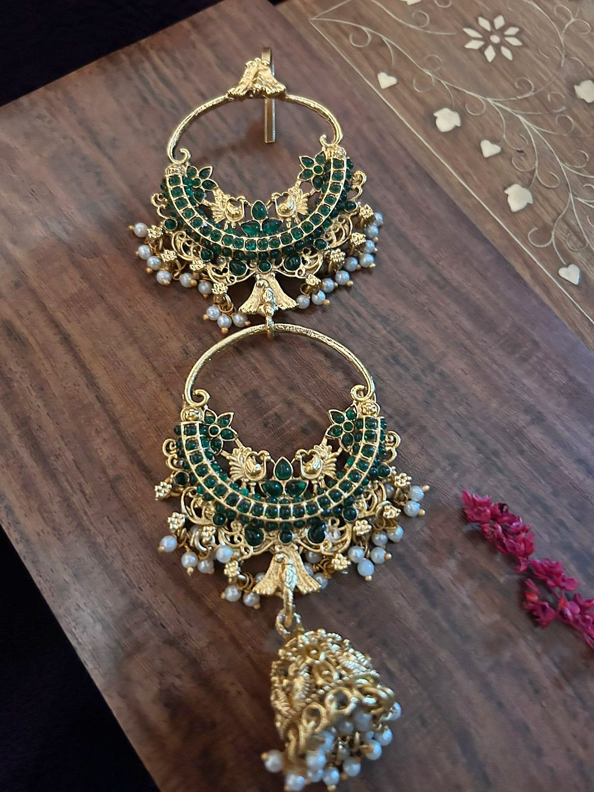 Victorian polish Ambani inspired emerald necklace set chain with Monalisa stone