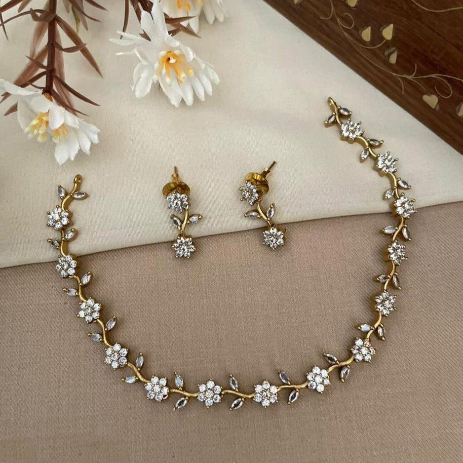 Gold Plated zercon floral concept Necklace Set