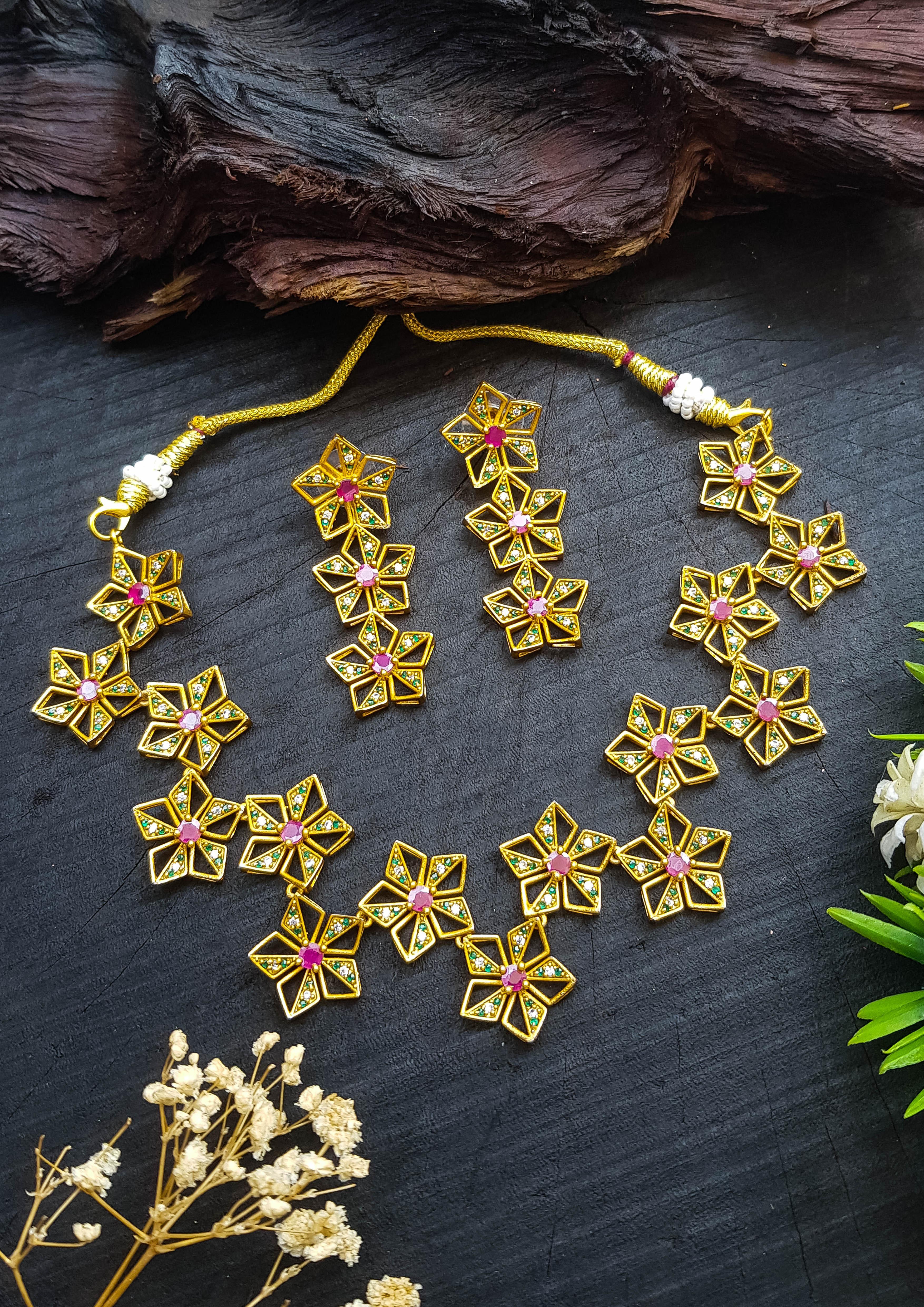 Chain with Lotus Floral motif Short Necklace Set original meenakari
