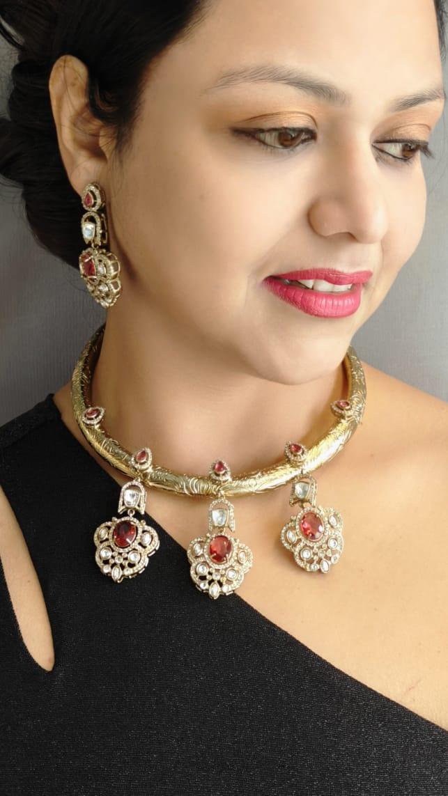 Premium Sayara Collection with 3 Interchangeable Stone Choker Necklace Set