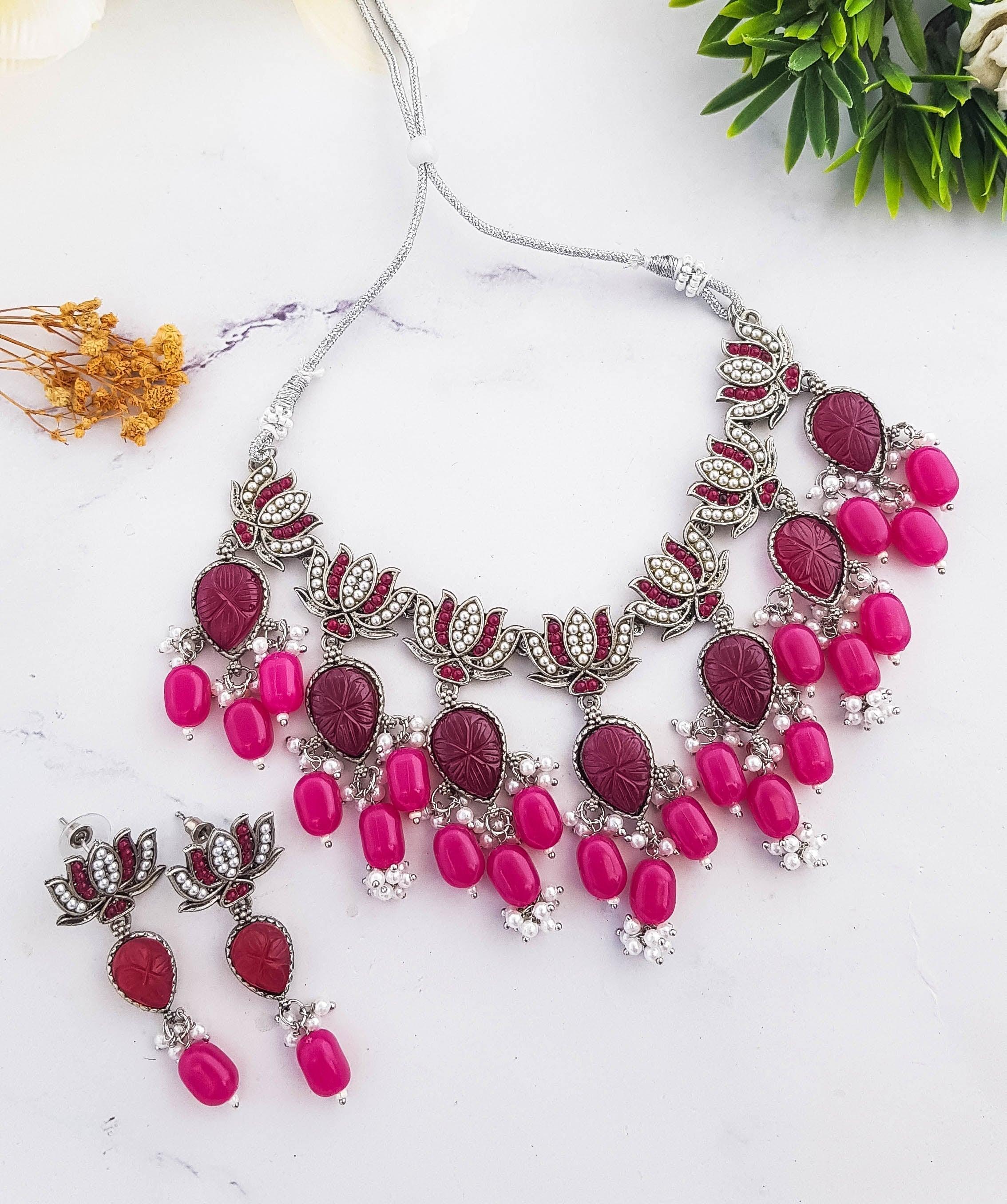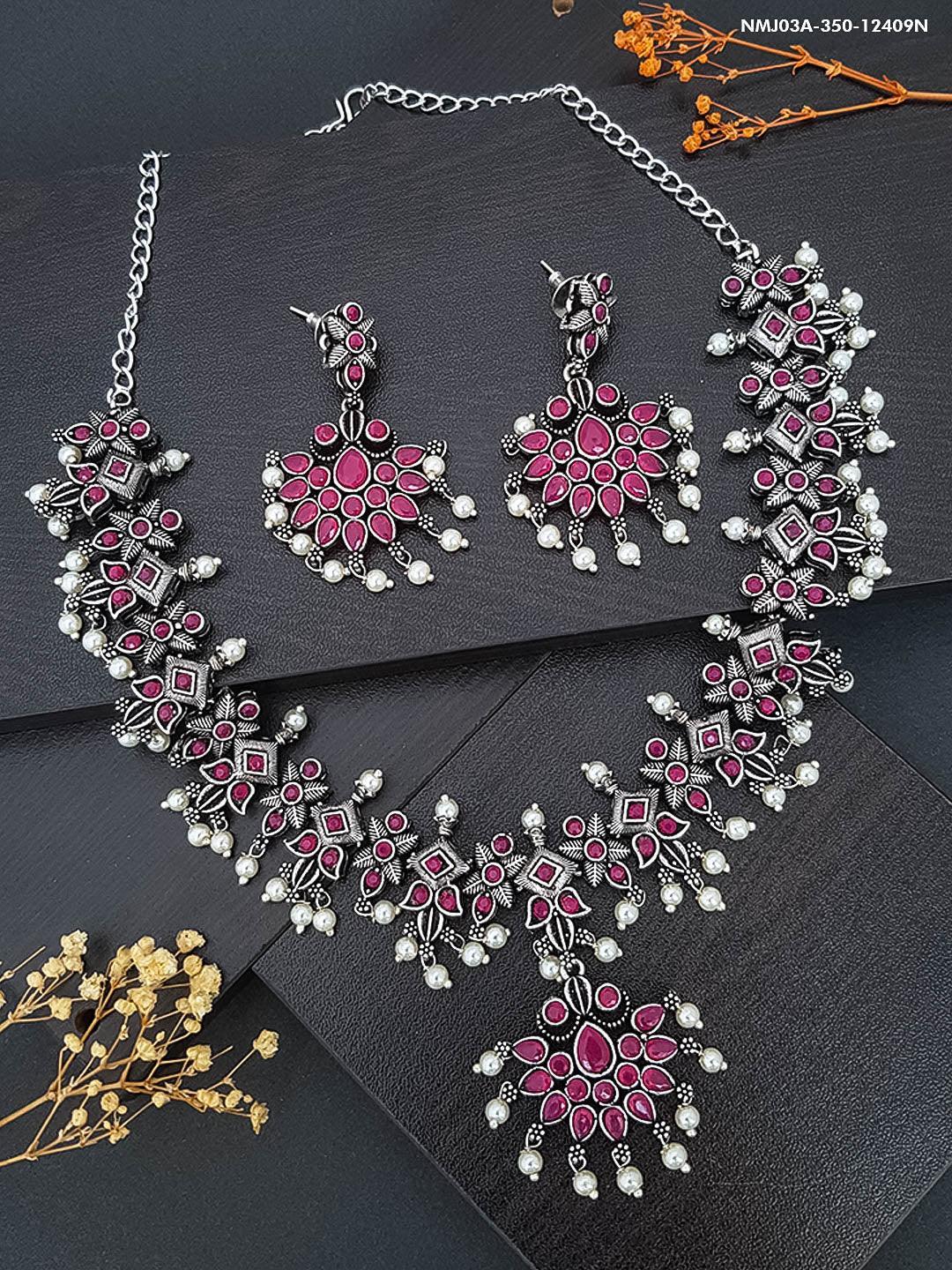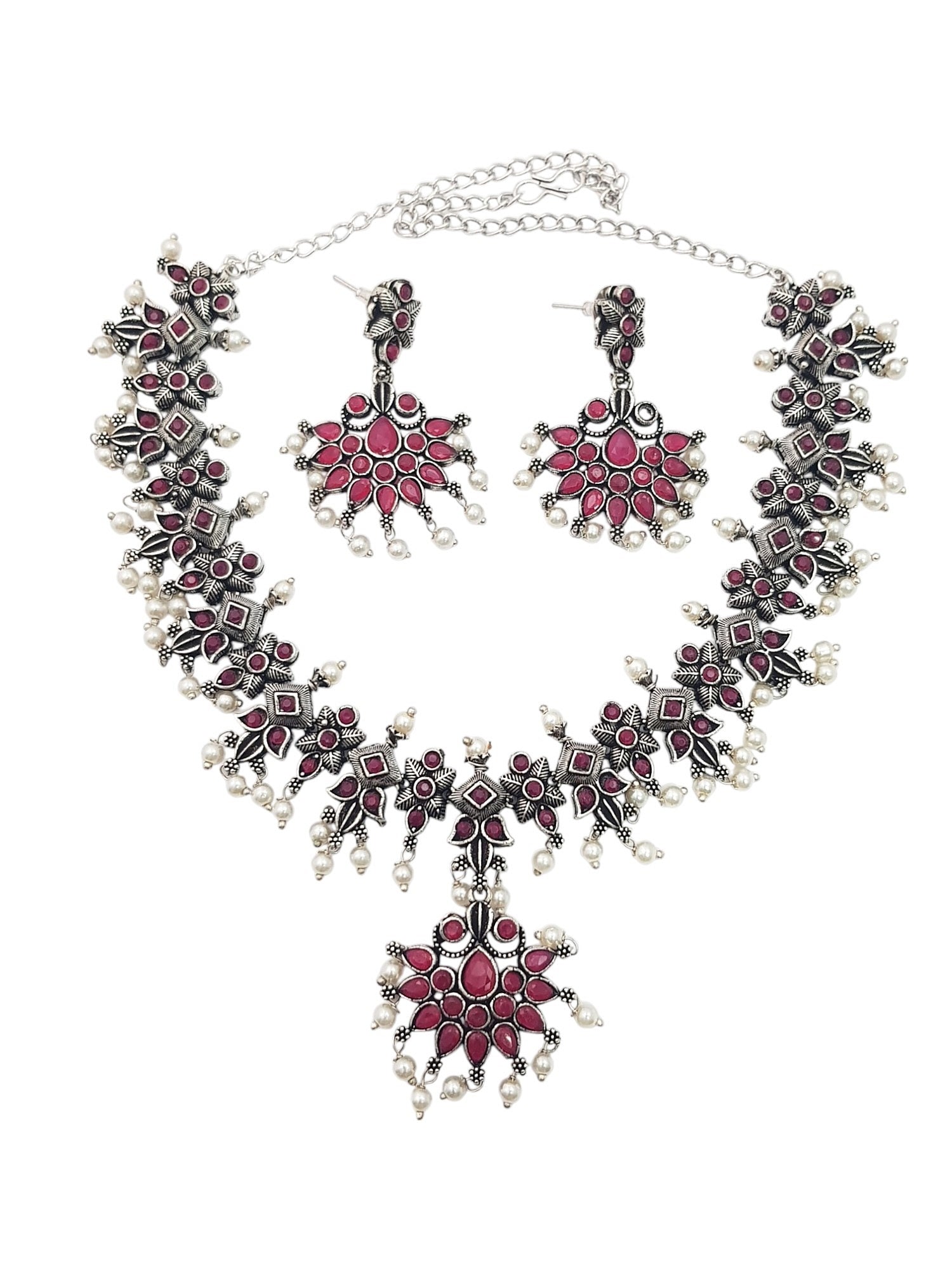German Silver Plated oxidised multicolor stone Necklace set - Griiham