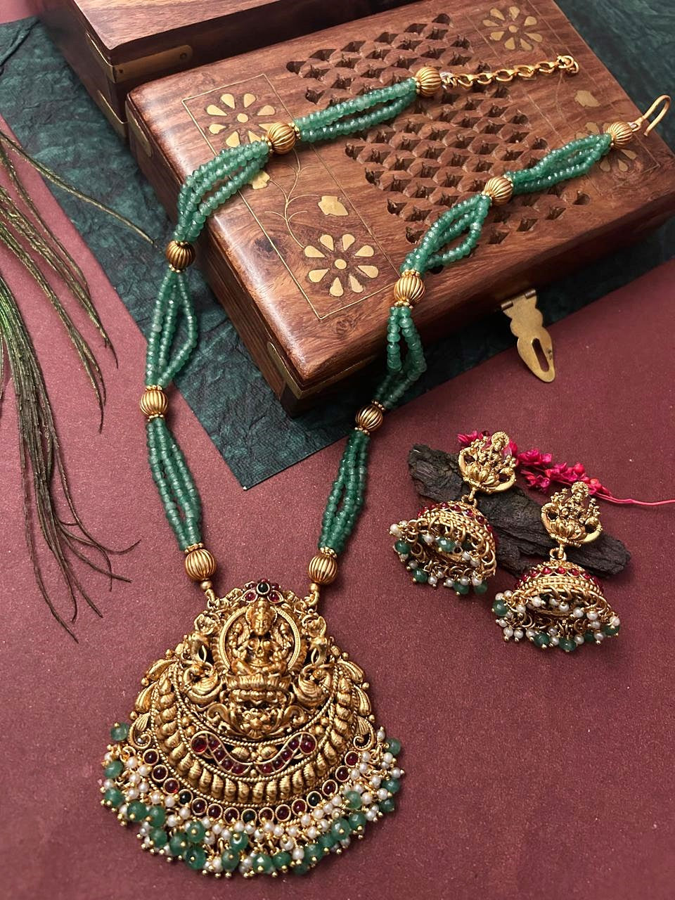 Victorian polish Ambani inspired emerald necklace set chain with Monalisa stone