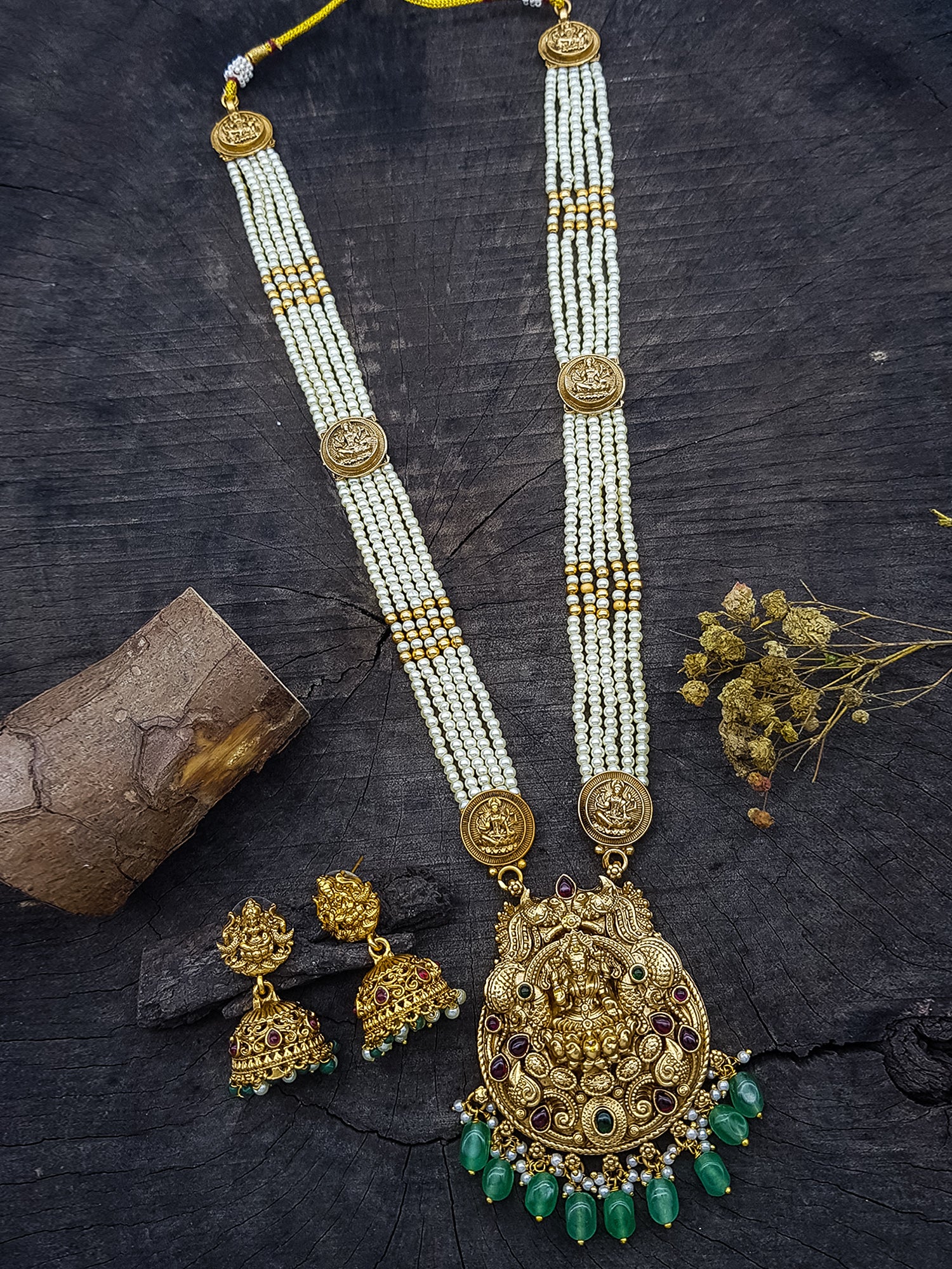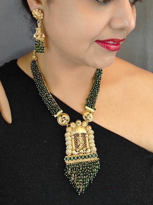 Victorian polish Ambani inspired emerald necklace set chain with Monalisa stone 24020N