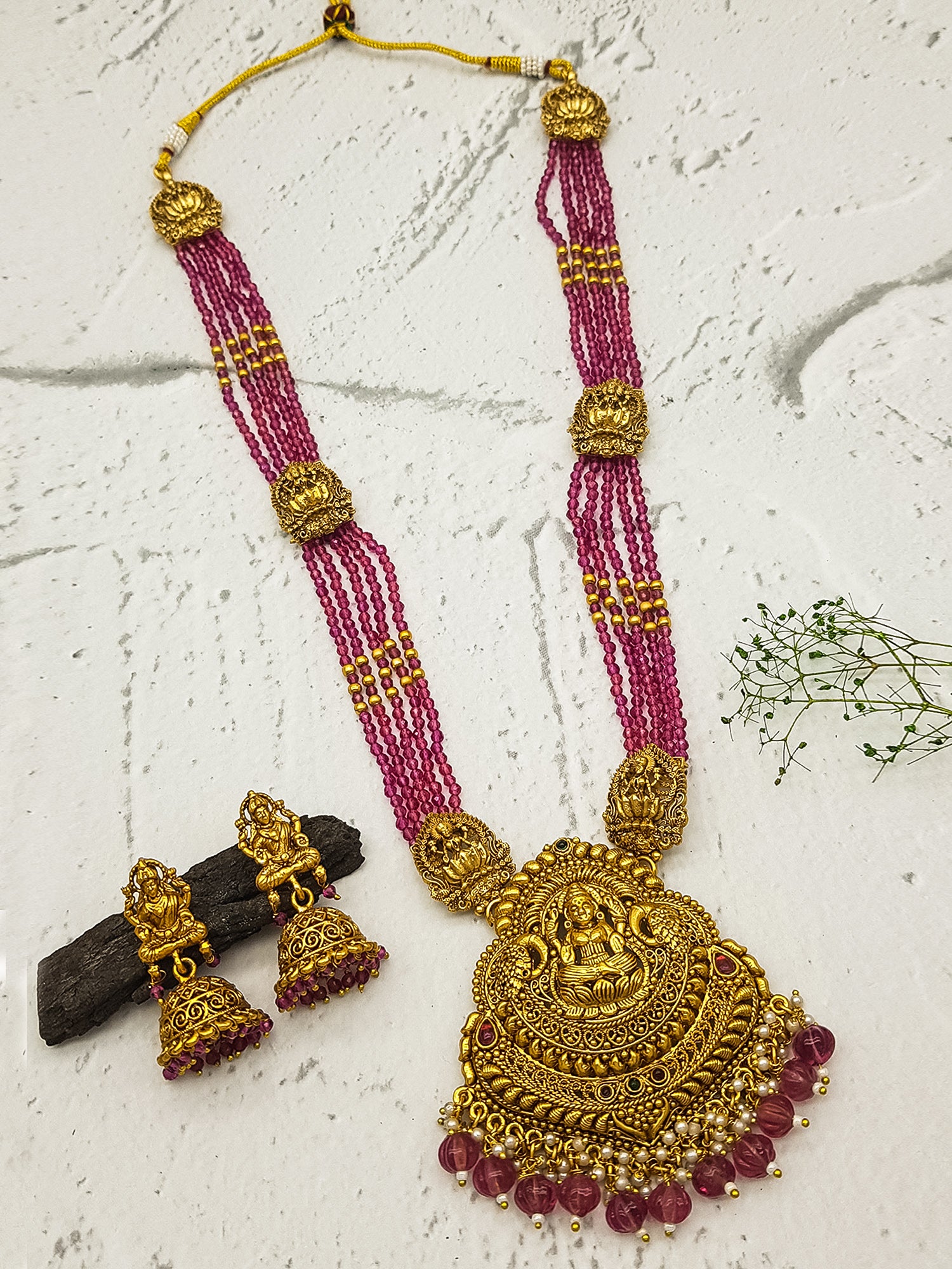 Antique Semi Precious Natural Stones beads Long Necklace Set