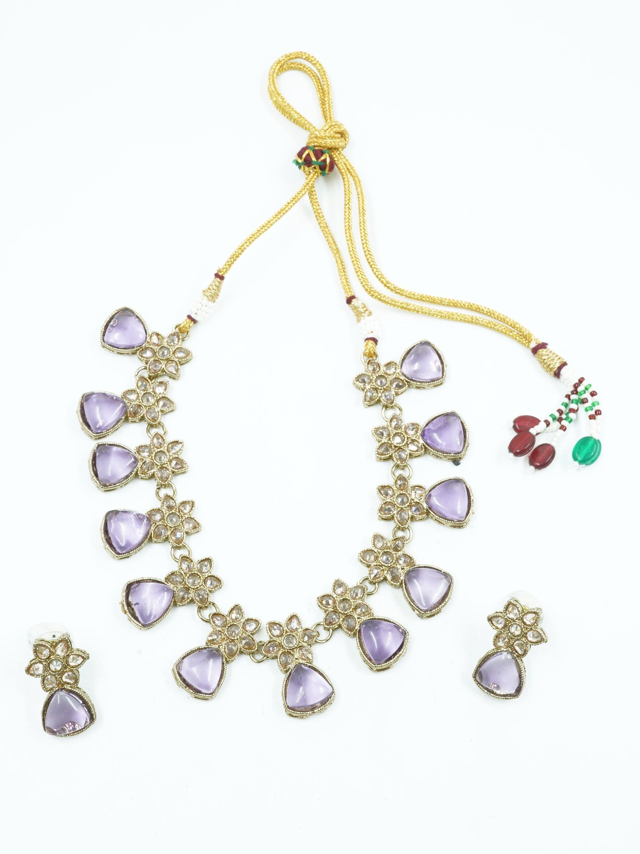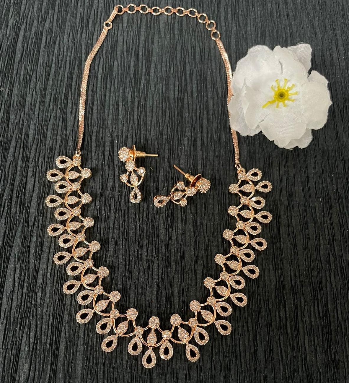 Premium Quality Short necklace set with white cz stones Stones 5837N