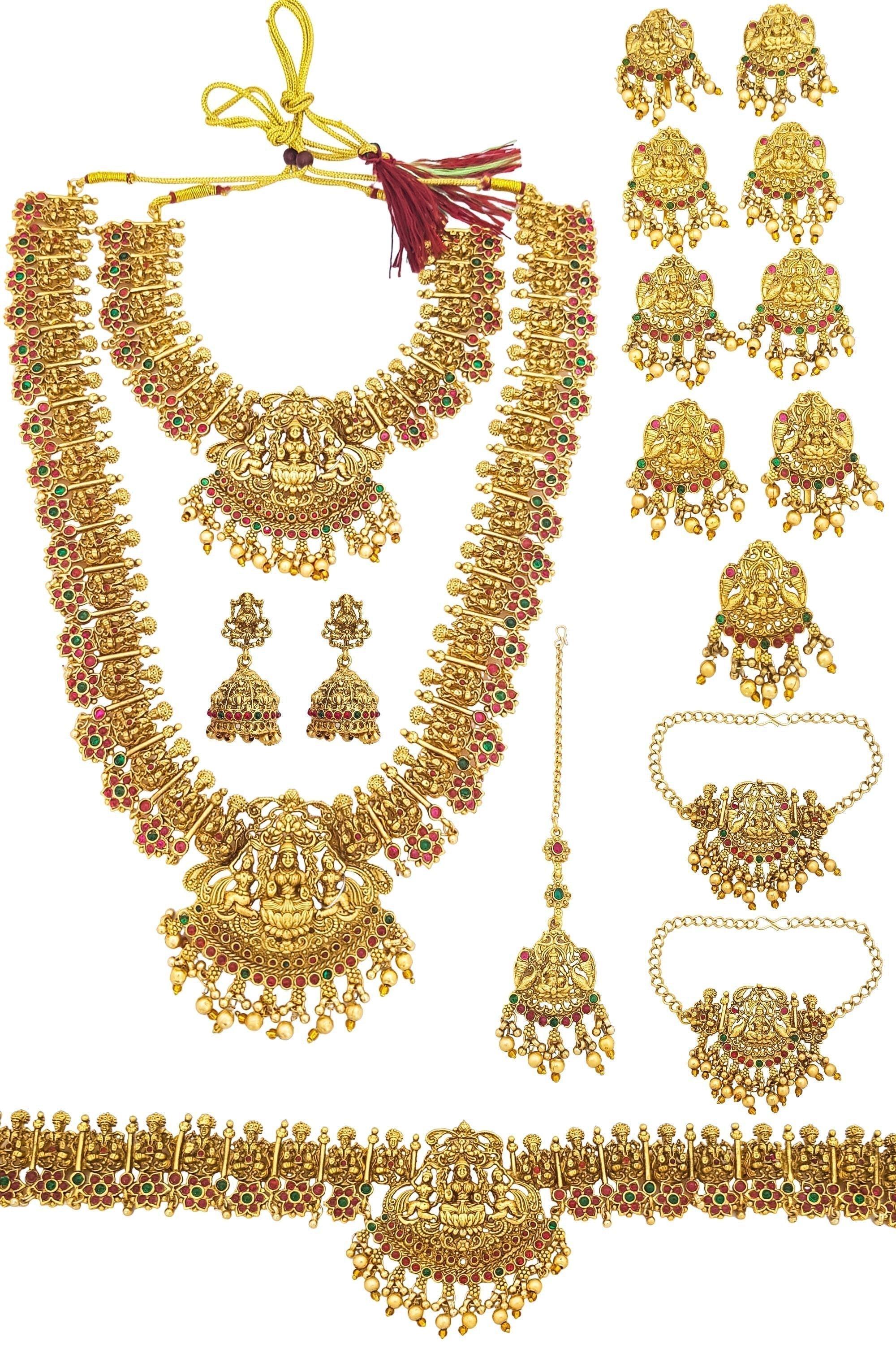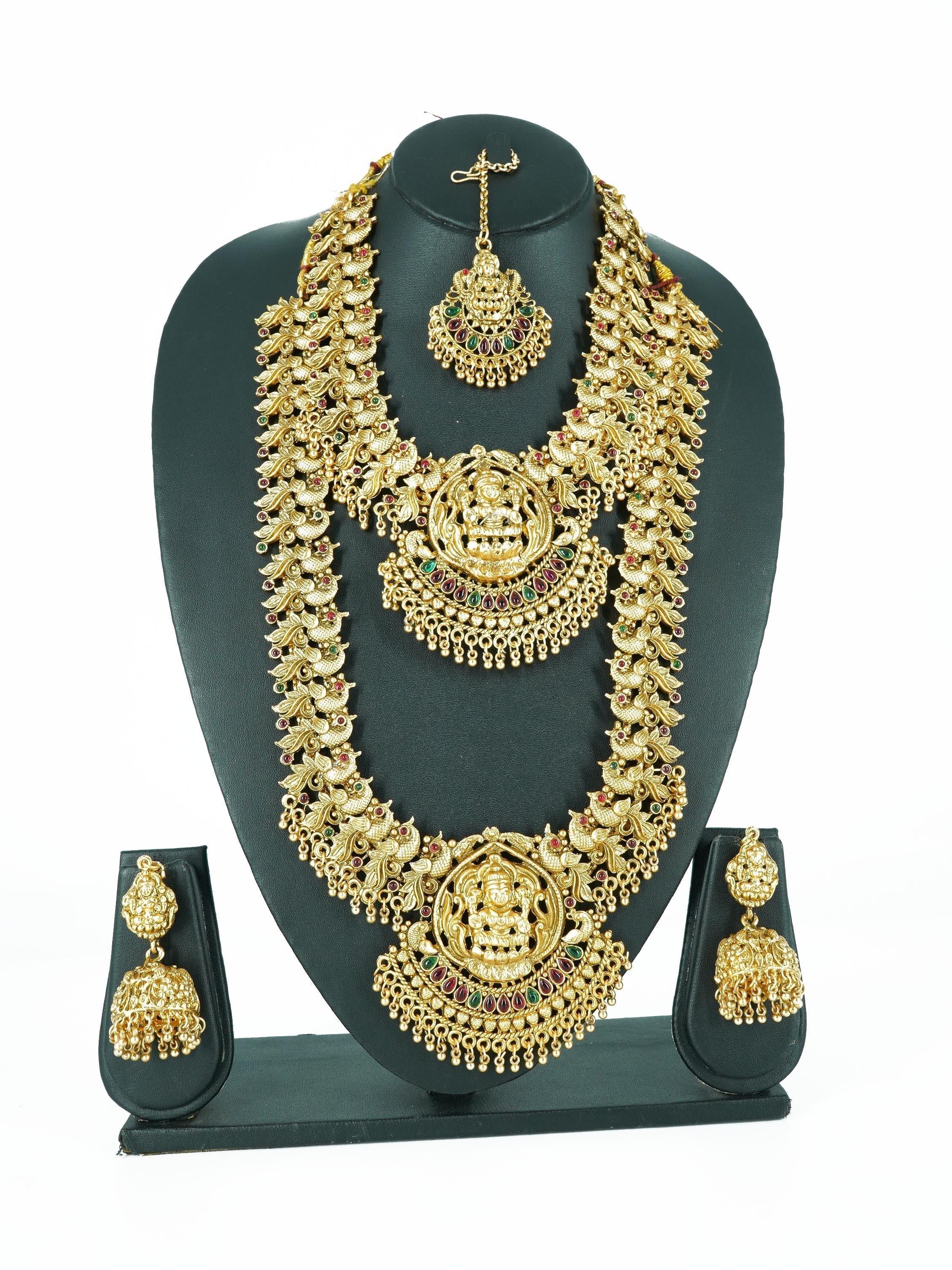 Premium Gold Finish Bridal Set Combo Necklace with Tikka