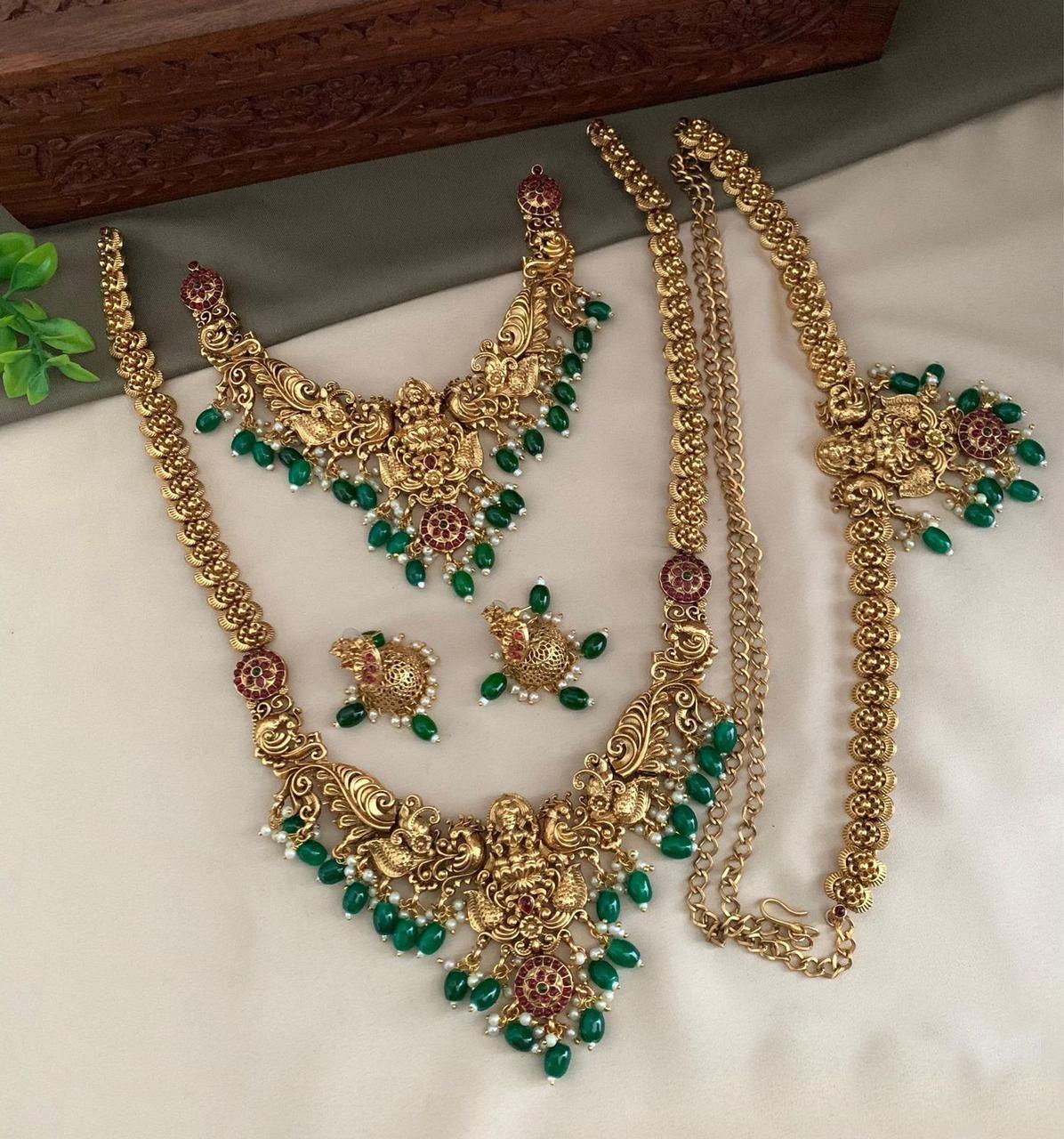 Antique Gold Finish Polish Full Bridal Set Peacock Combo