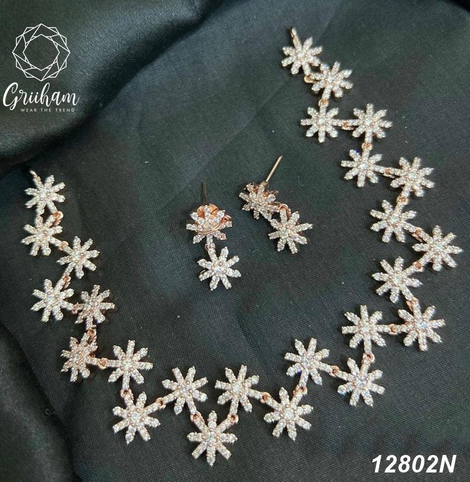 Elegant premium quality cz necklace set rose gold 12288N - Griiham