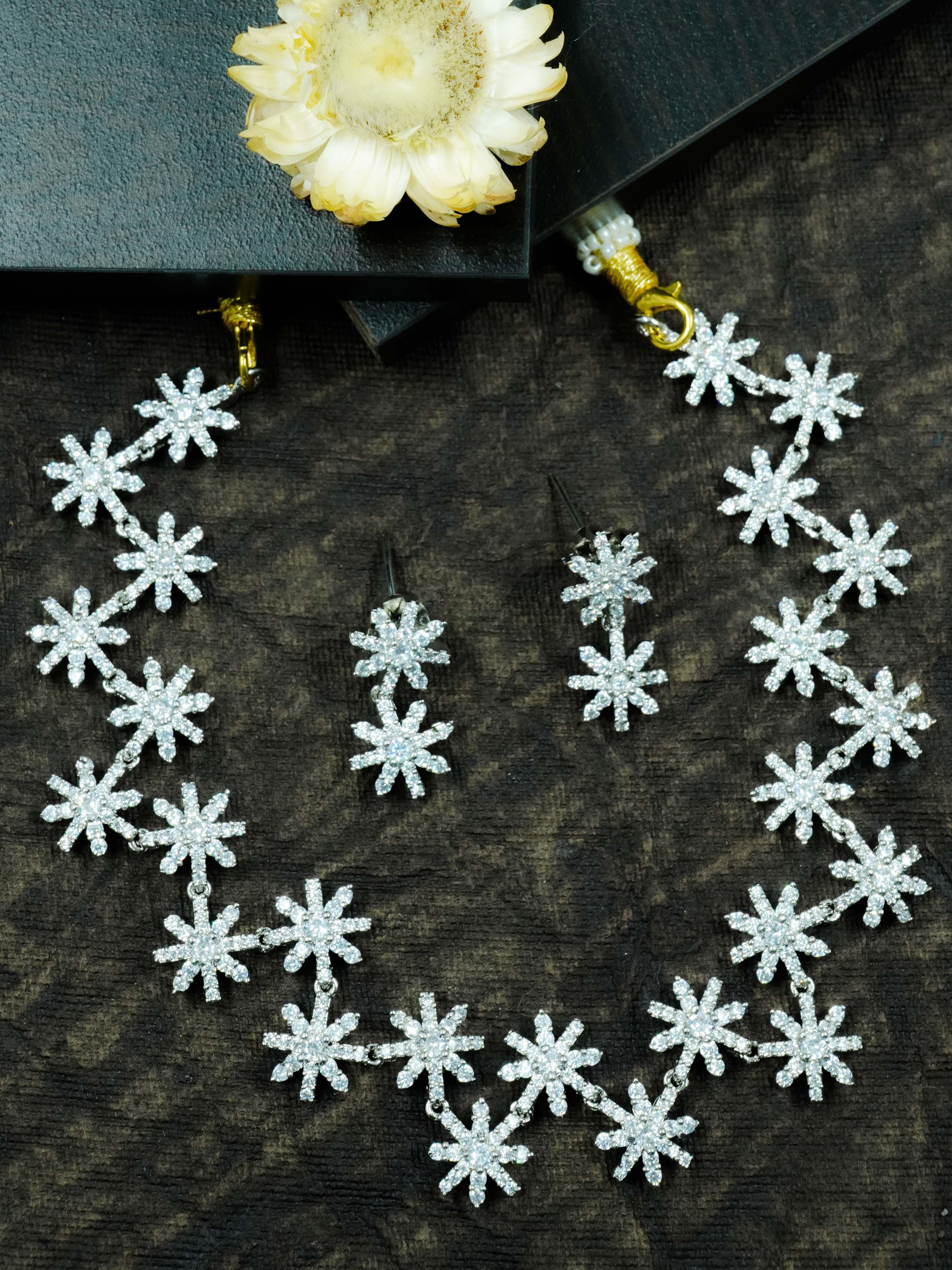 Premium Quality Short necklace set with white cz stones Stones 5837N