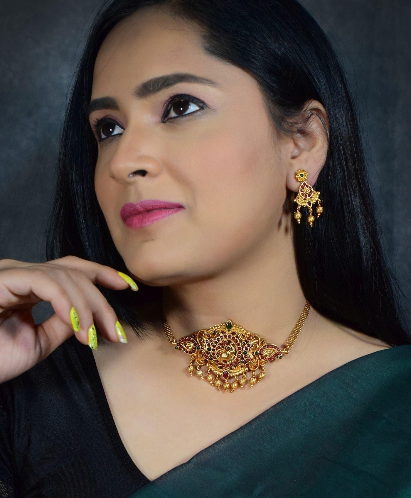 Premium Antique Gold finish zercon stone Laxmi necklace set