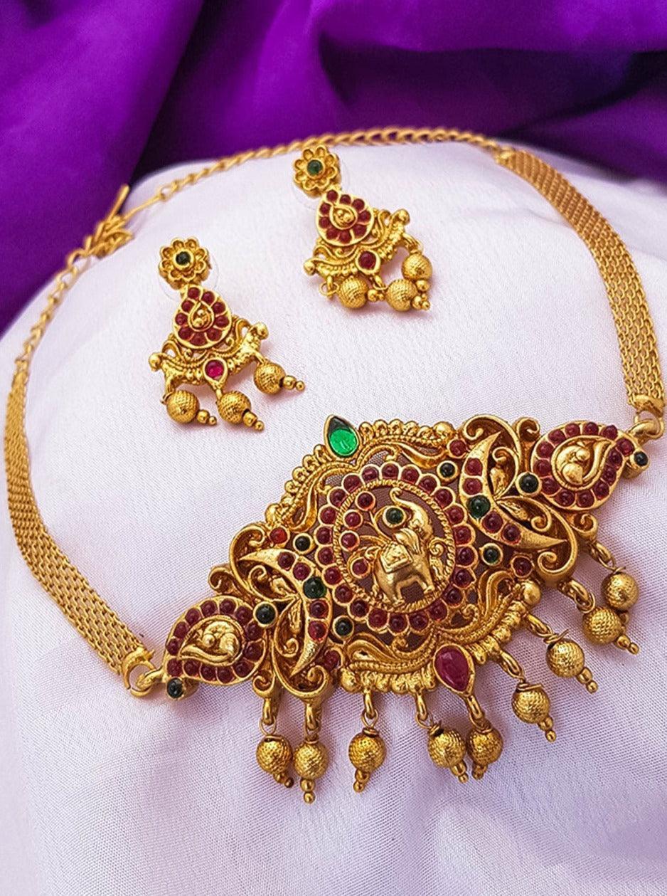 Premium Gold finish Antique Necklace Set 22087N - Griiham