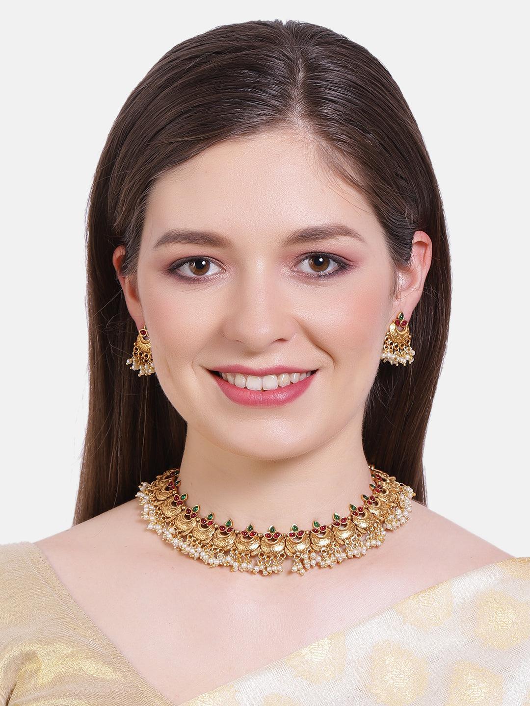 Premium Gold Finish High Quality Short Necklace Set with AD stones for all occasion