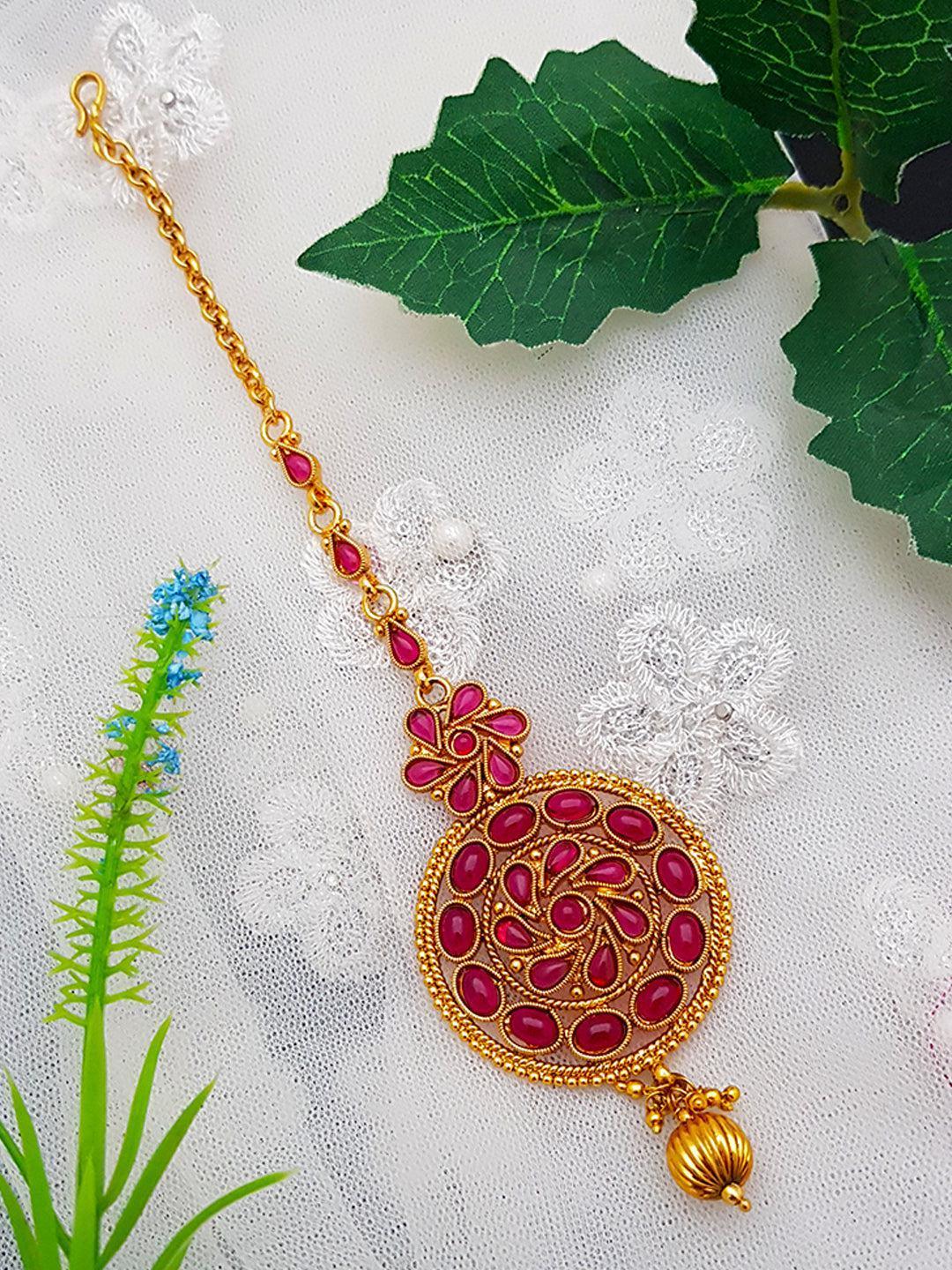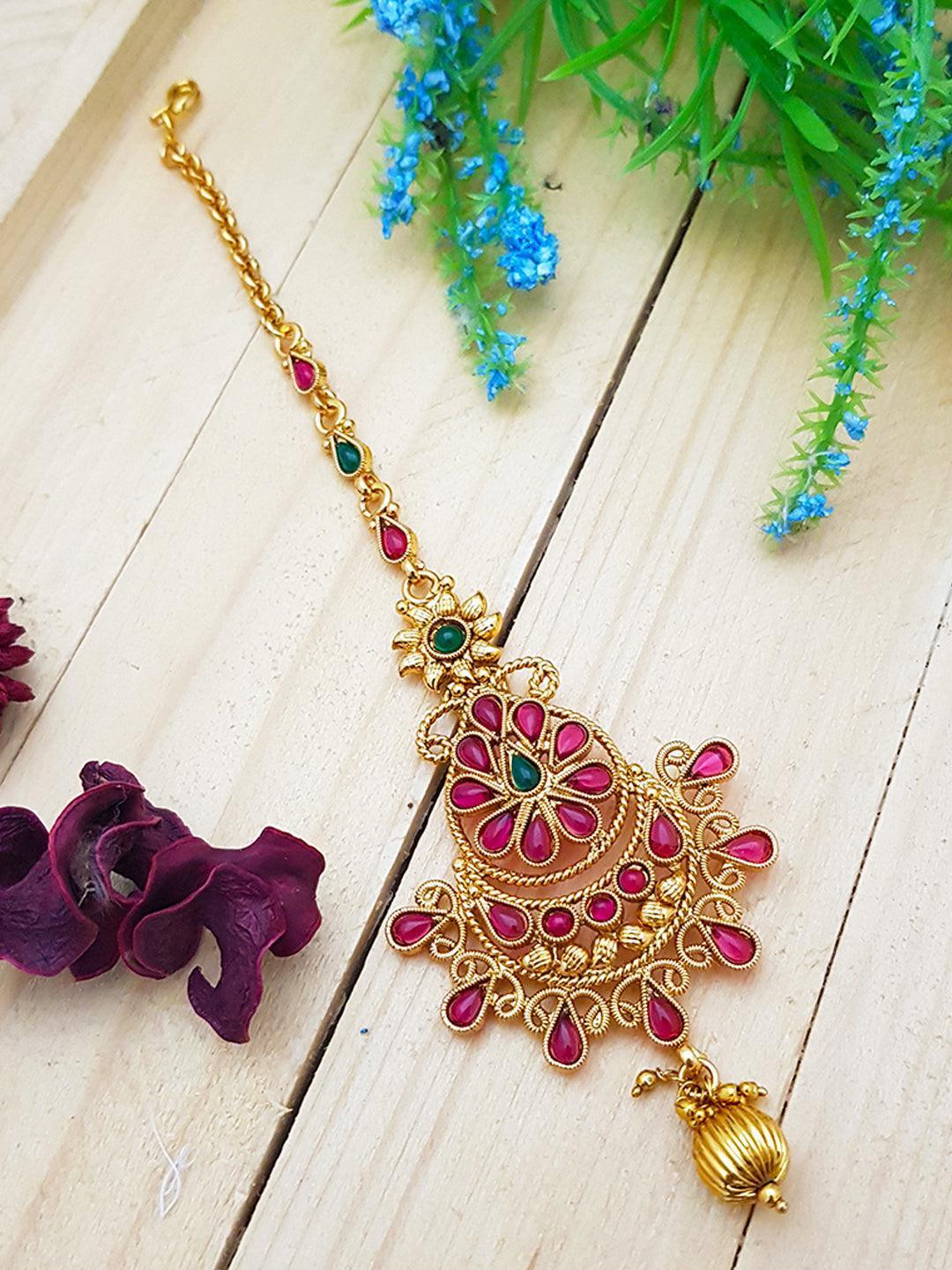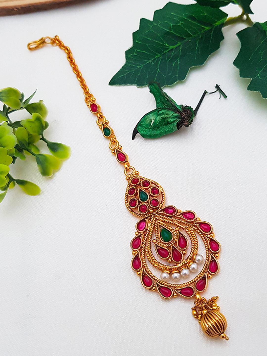 Victorian polish Ambani inspired emerald necklace set chain with Monalisa stone 24020N