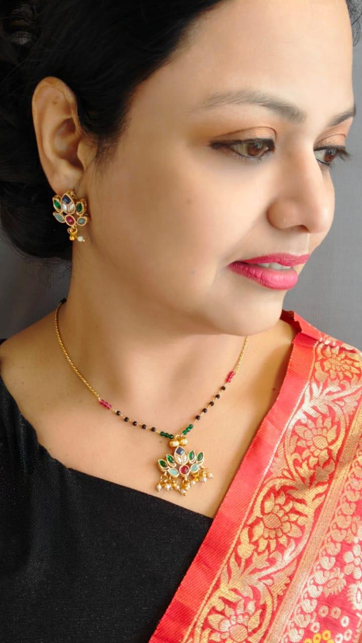 Chain with Lotus Floral motif Short Necklace Set original meenakari