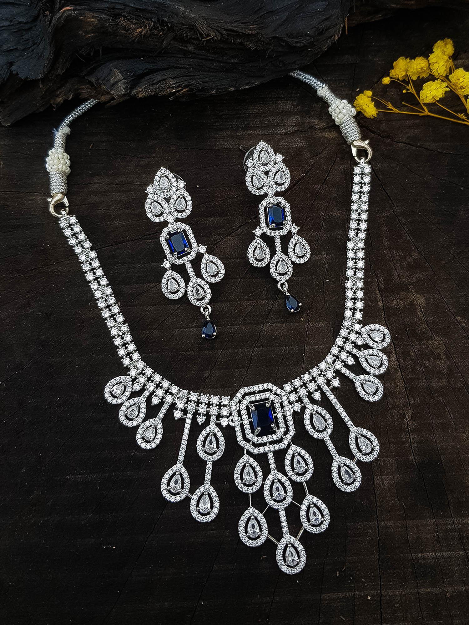 Premium Cz Stone designer Necklace set in Red and Blue colors