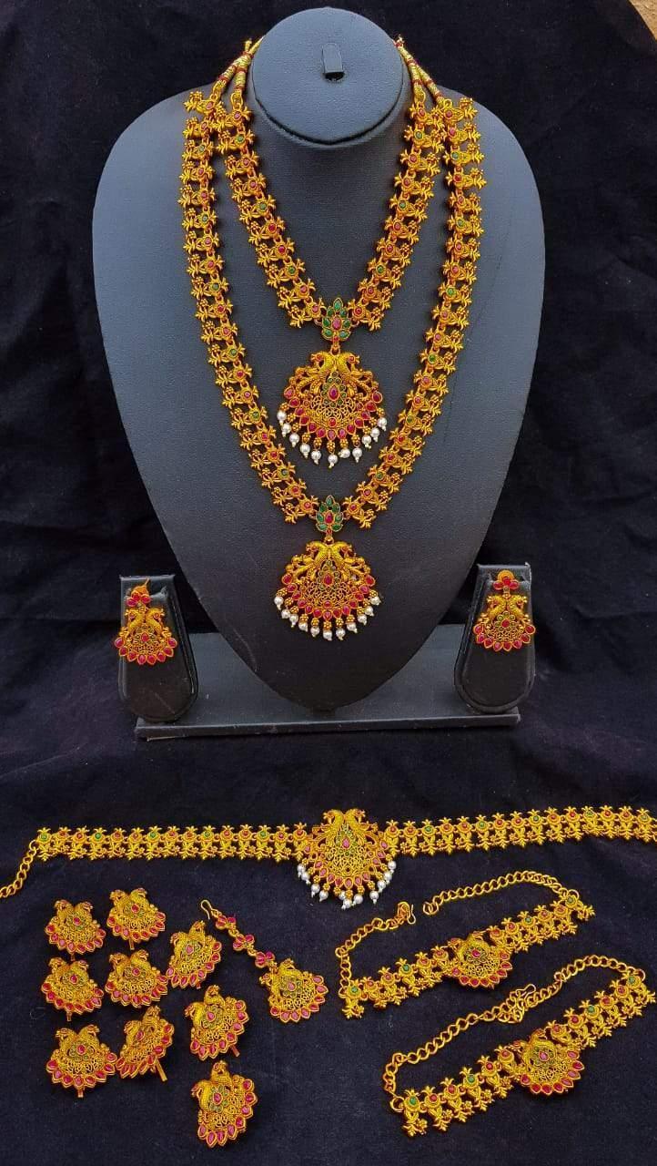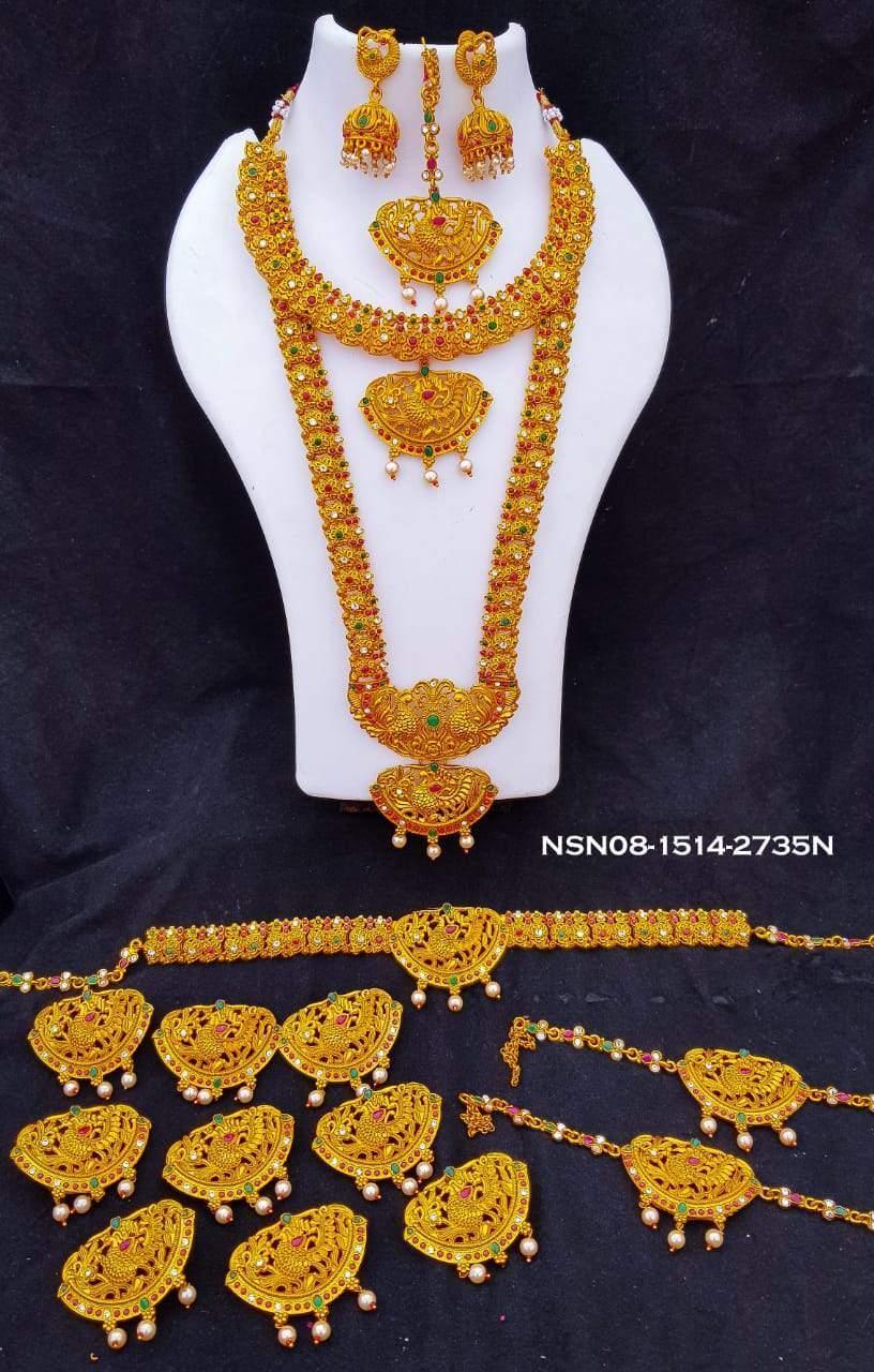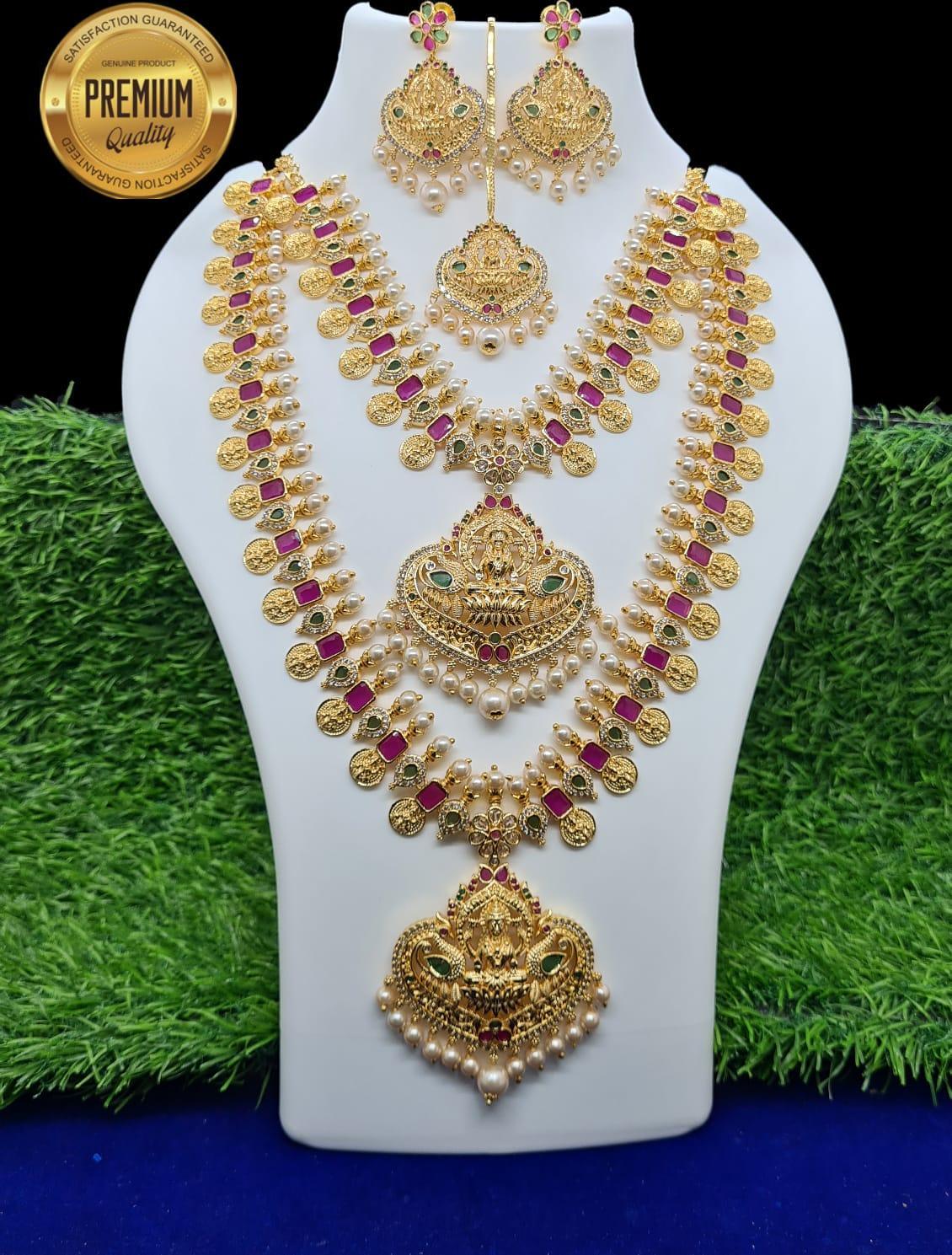 Exclusive Premium Gold finish necklace Combo set Bridal set 1st quality only 8480N