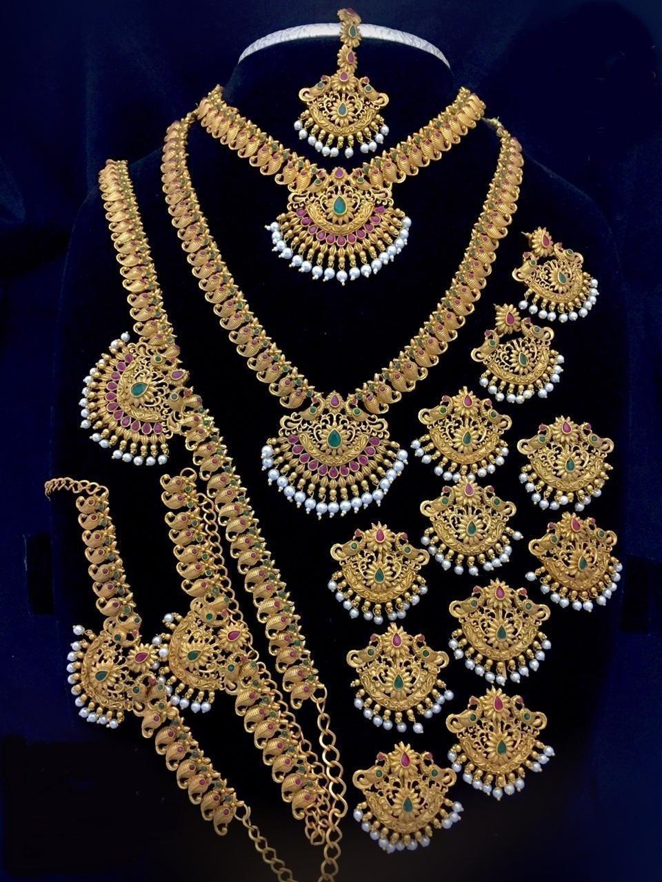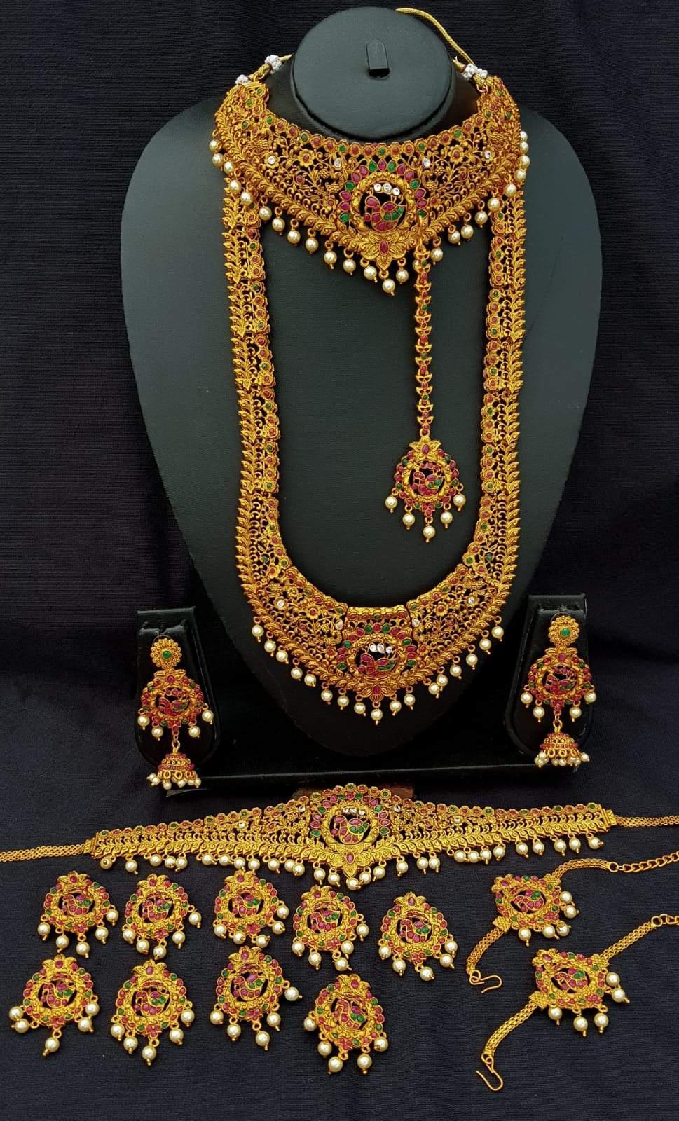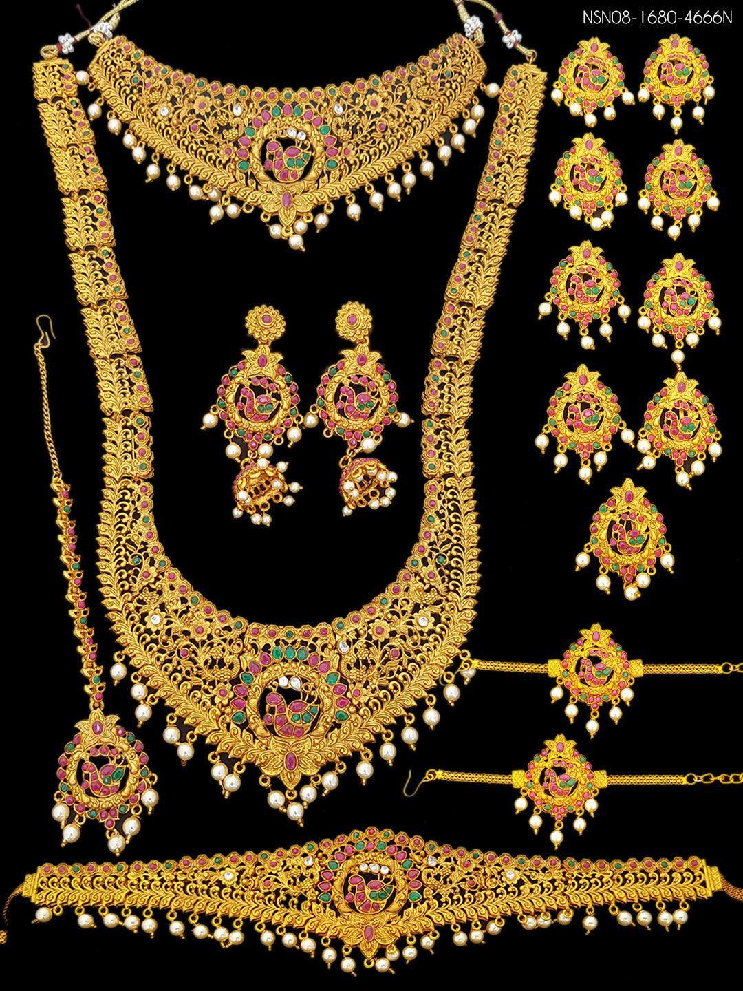 Exclusive Premium Gold finish necklace Combo set Bridal set 1st quality only 8480N