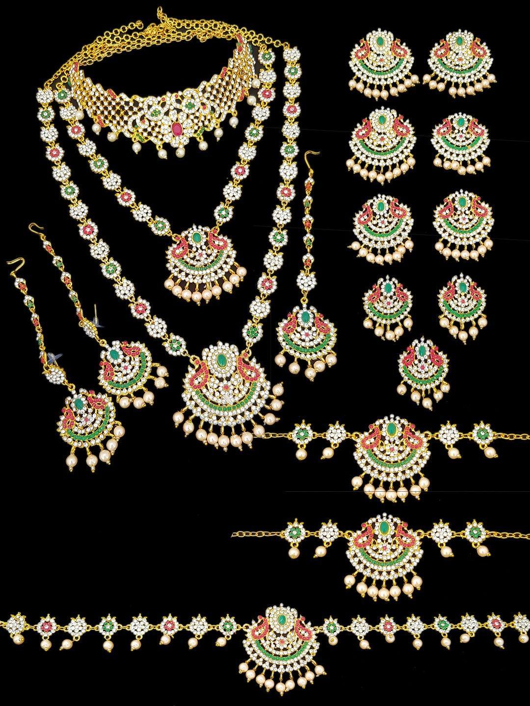 Premium Bridal Multilayer Long CZ Haram Necklace Set