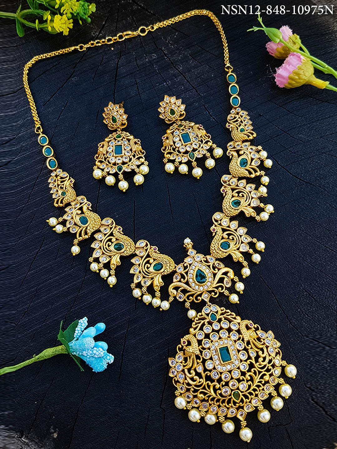 Gold Plated Classic Zercon czLong Necklace Set combo bridal