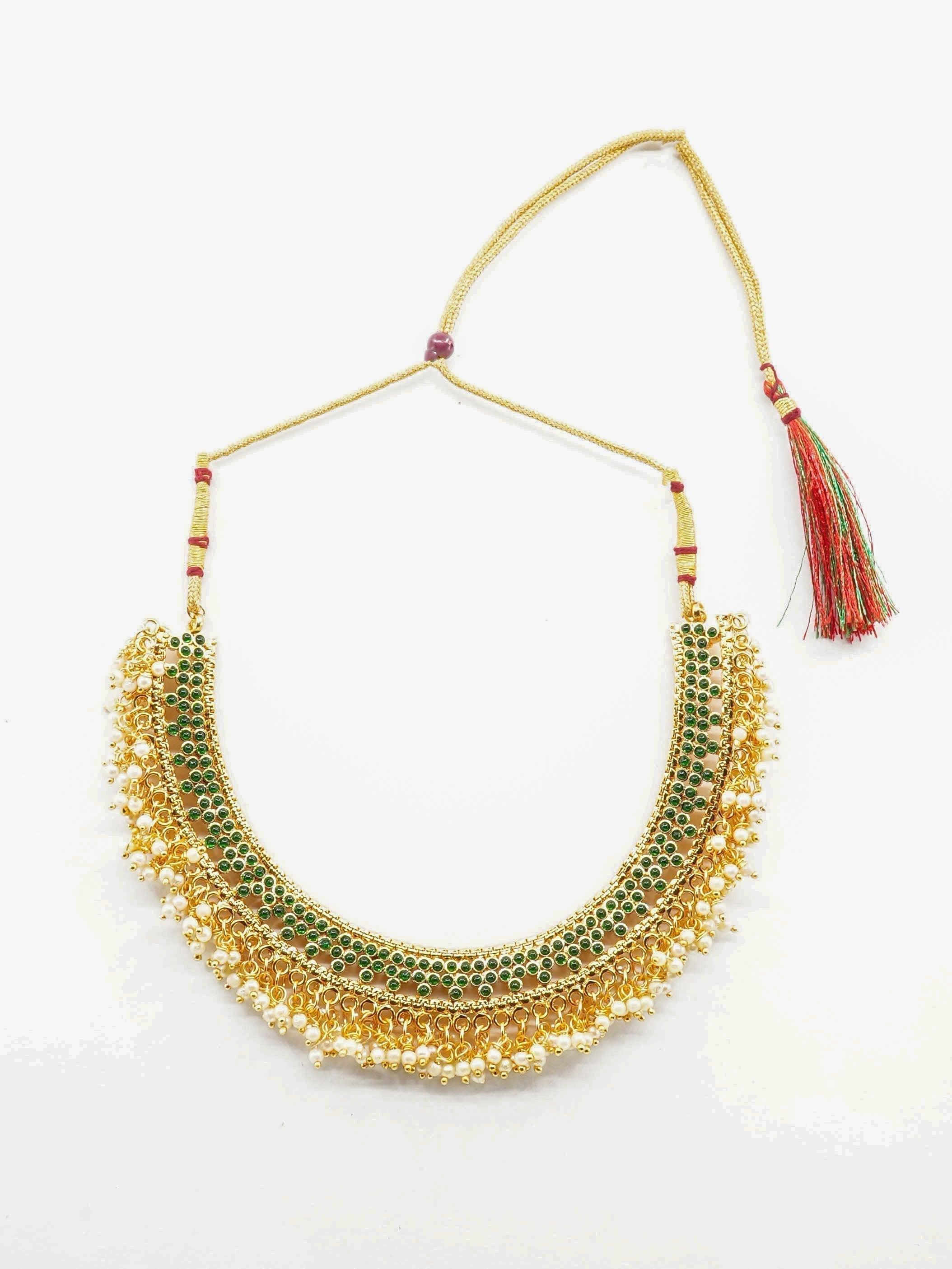 • Look beautiful with this Antique Finish pearl short necklace. The superhit design features a stunning choker set studded with stones for an elegant, timeless look. Perfect for any occasion.