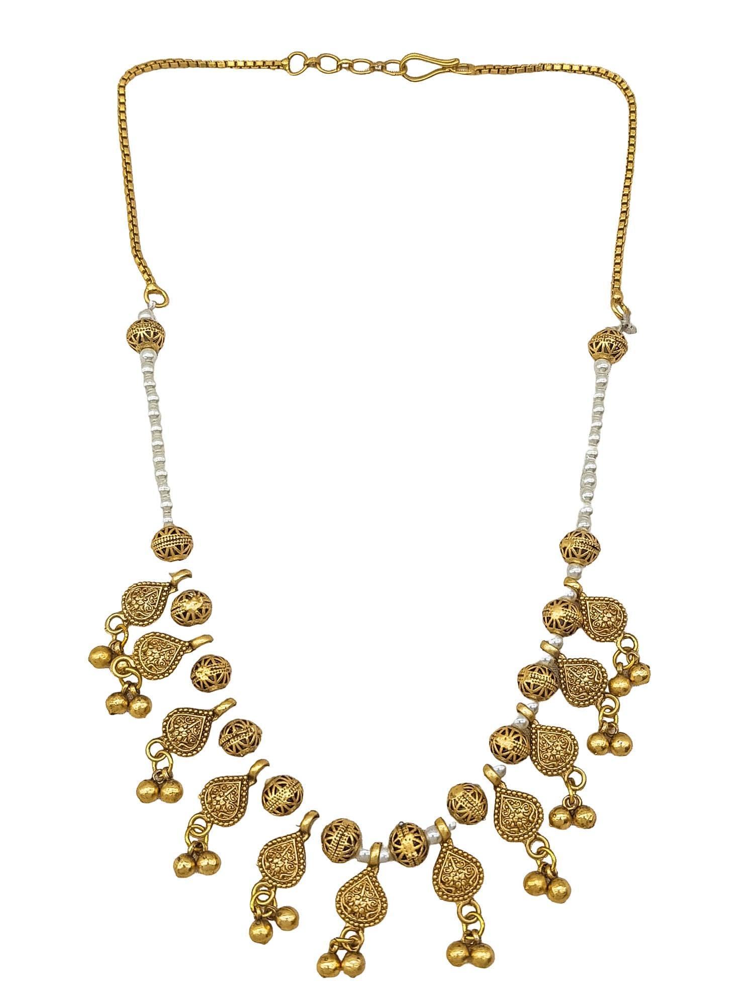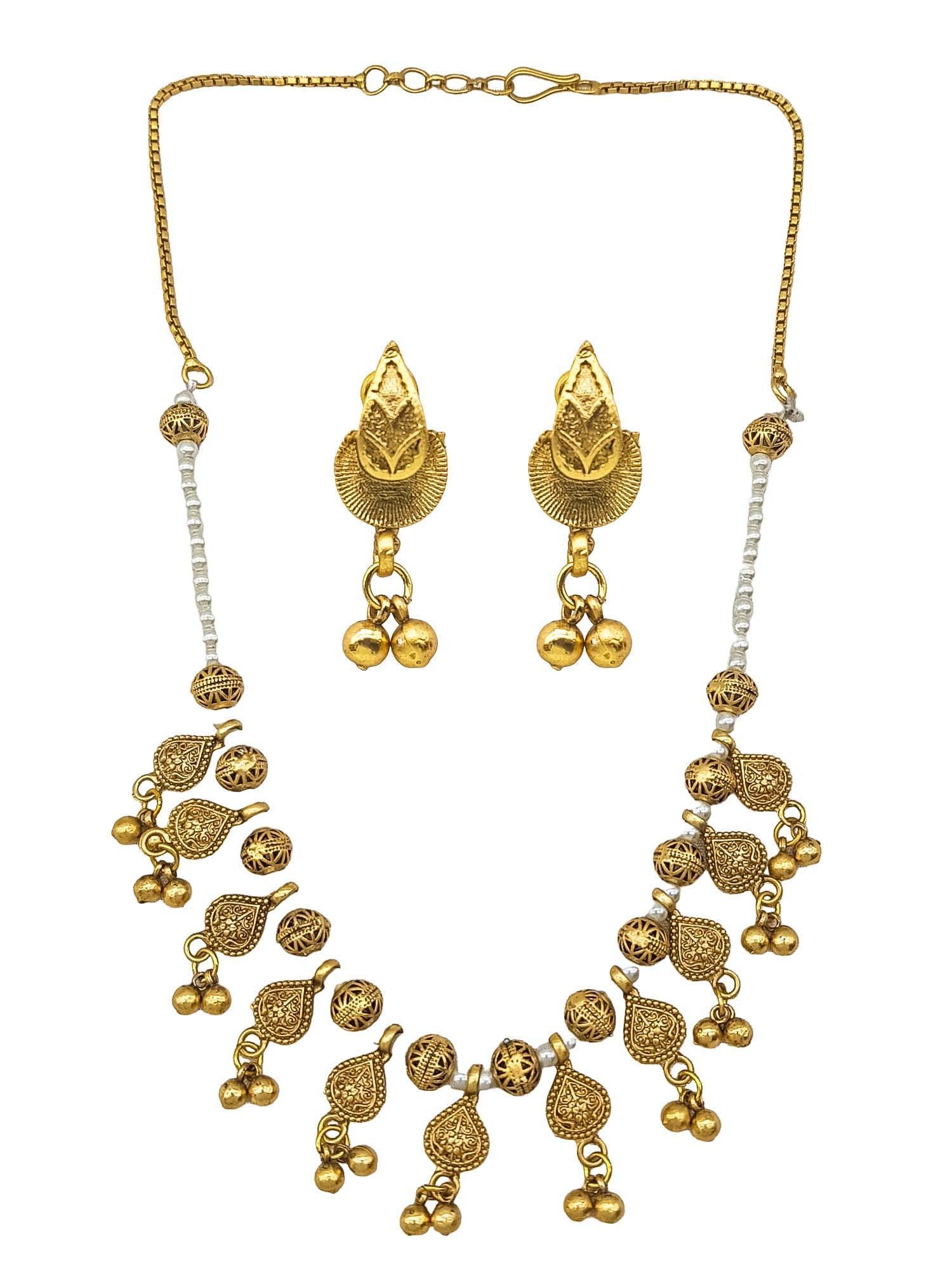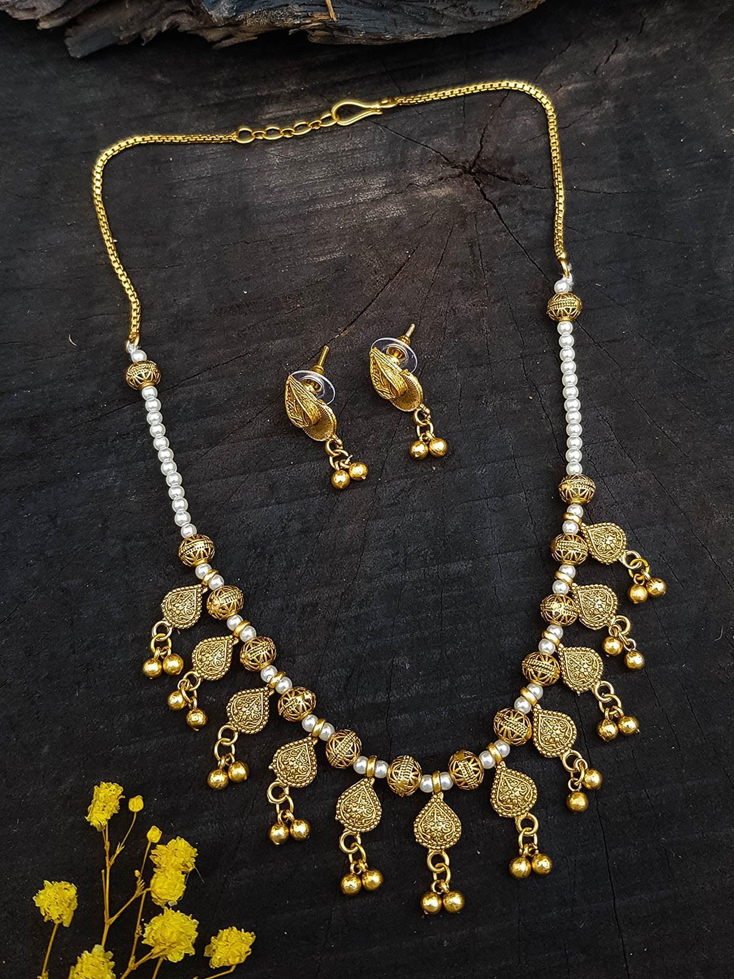 Add a touch of elegance with this Antique Gold Plated Pearl Necklace Set. Perfect for any occasion, this set features antique gold plating and stunning pearls. Upgrade your accessory game with this timeless piece.