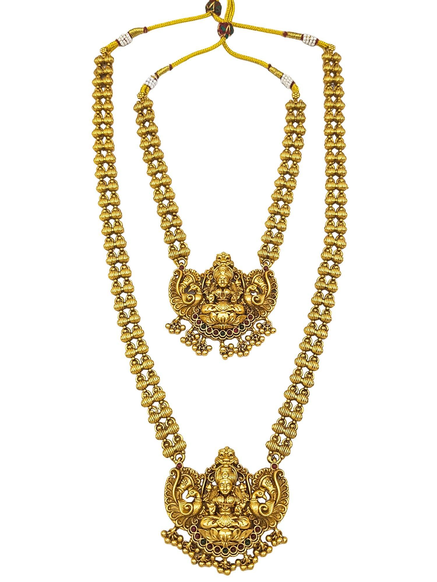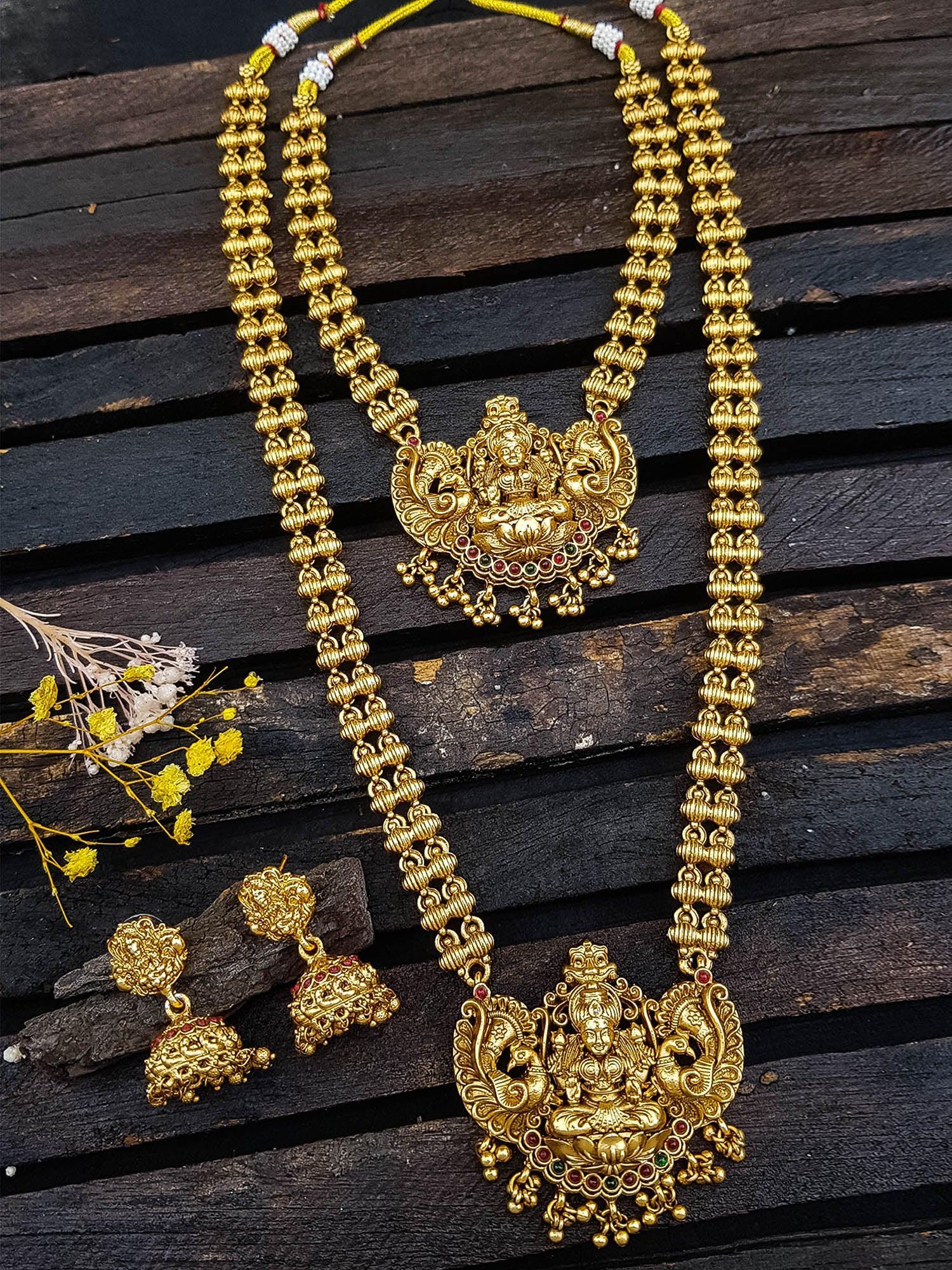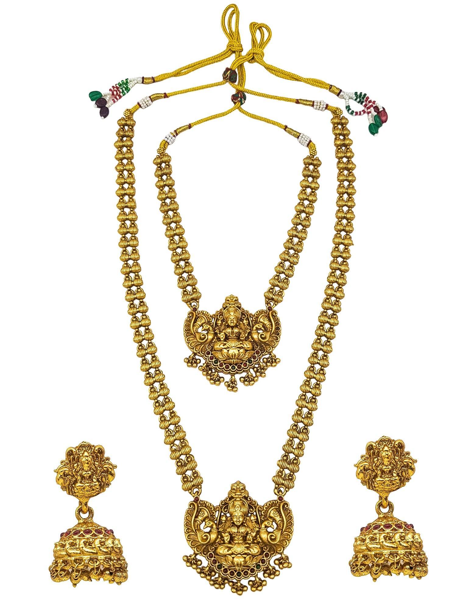 Experience the elegance and sophistication of our Antique Premium Gold finish necklace Combo set. This luxurious Bridal Necklace set boasts intricate detailing and a stunning gold finish, making it the perfect accessory for any special occasion.