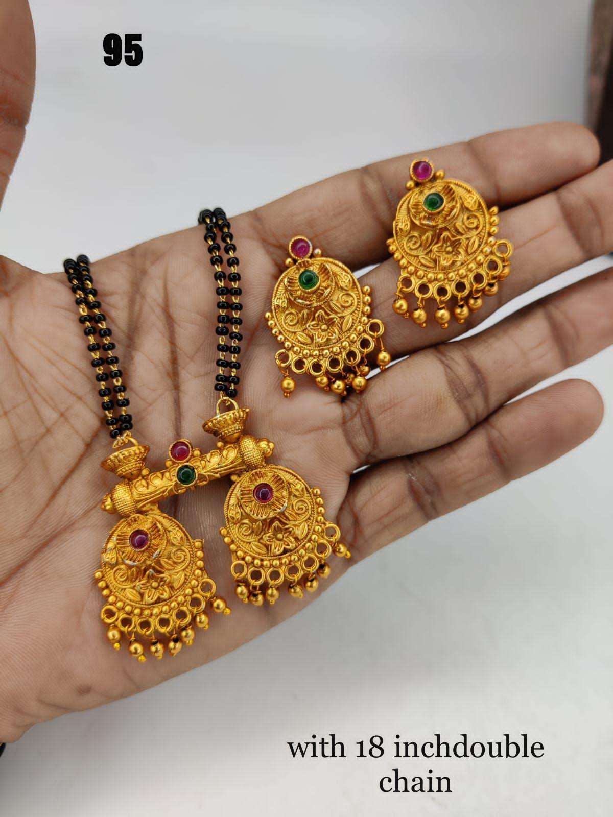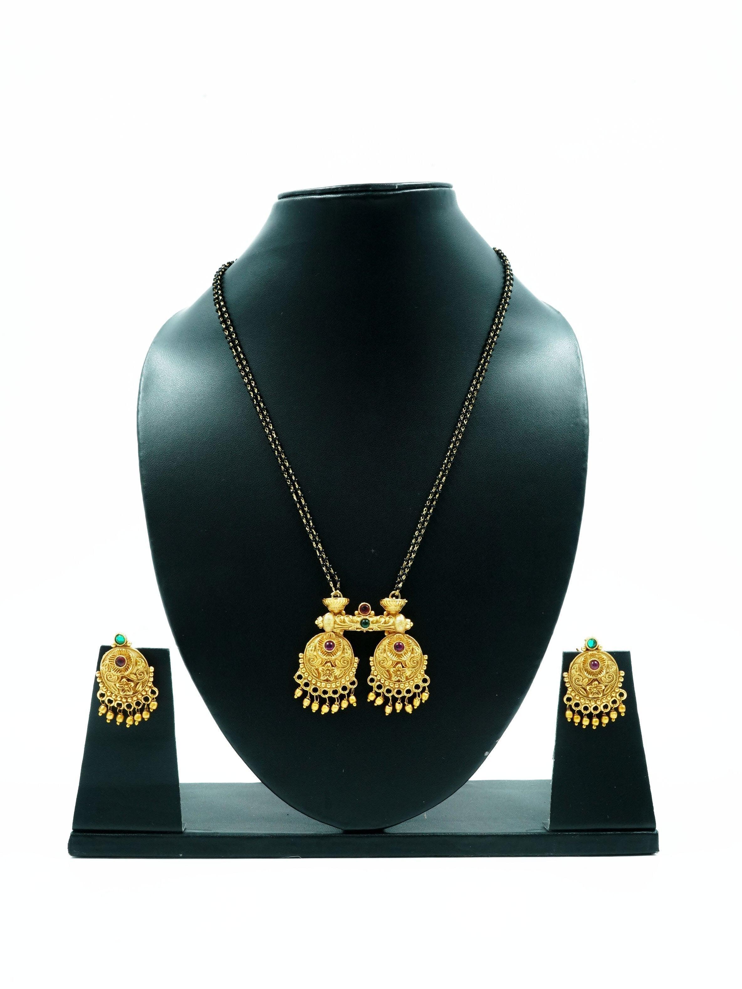 Black bead wati mani pendant Mangalya chain necklace set 18 inches