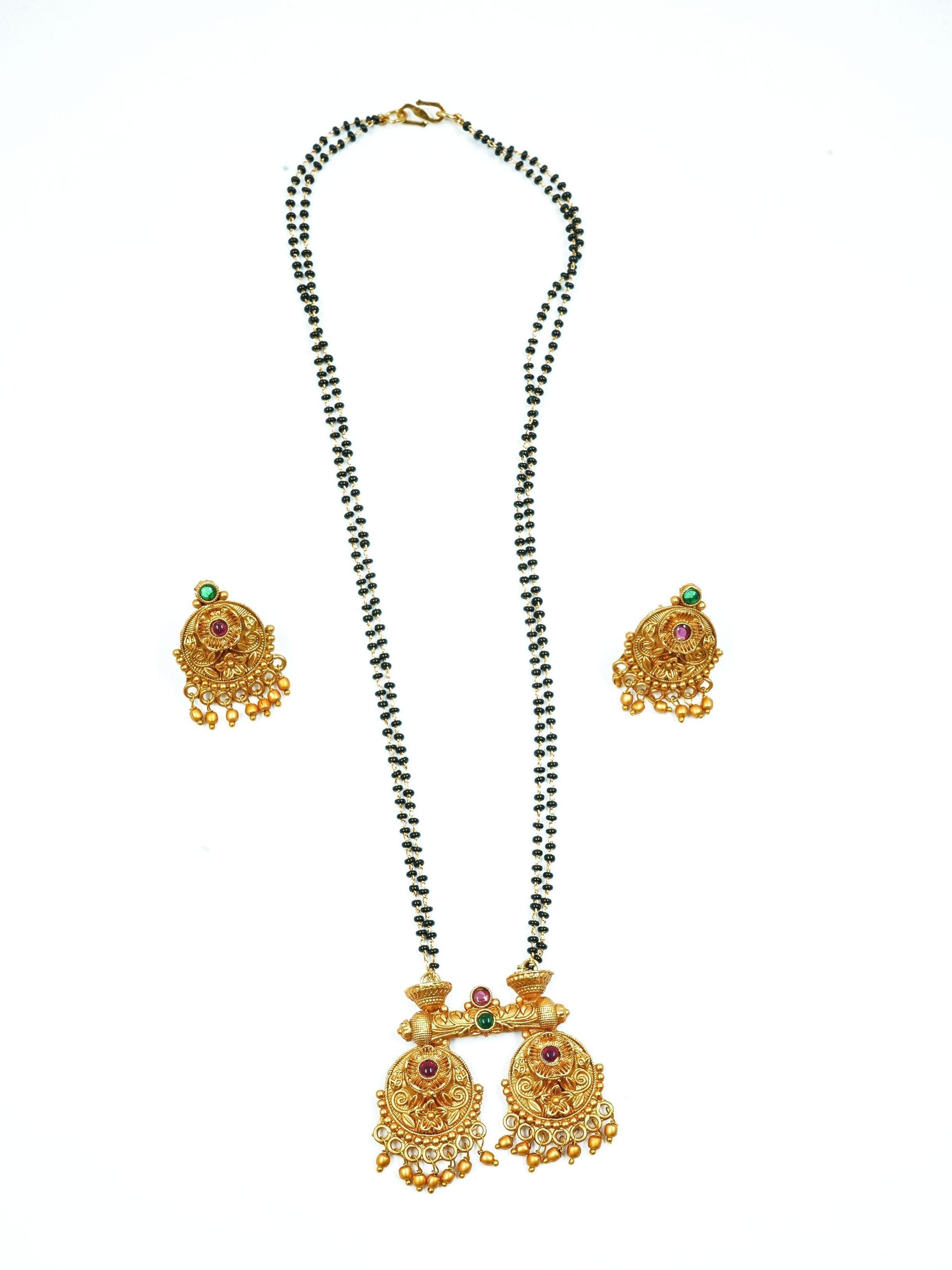 Black bead wati mani pendant Mangalya chain necklace set 18 inches - Griiham