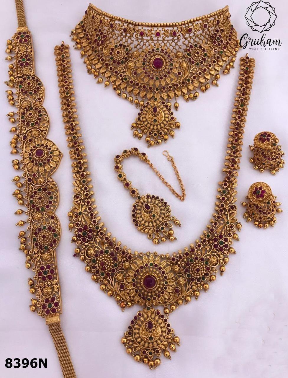 Exclusive Premium Gold finish necklace Combo set Bridal set 8396N