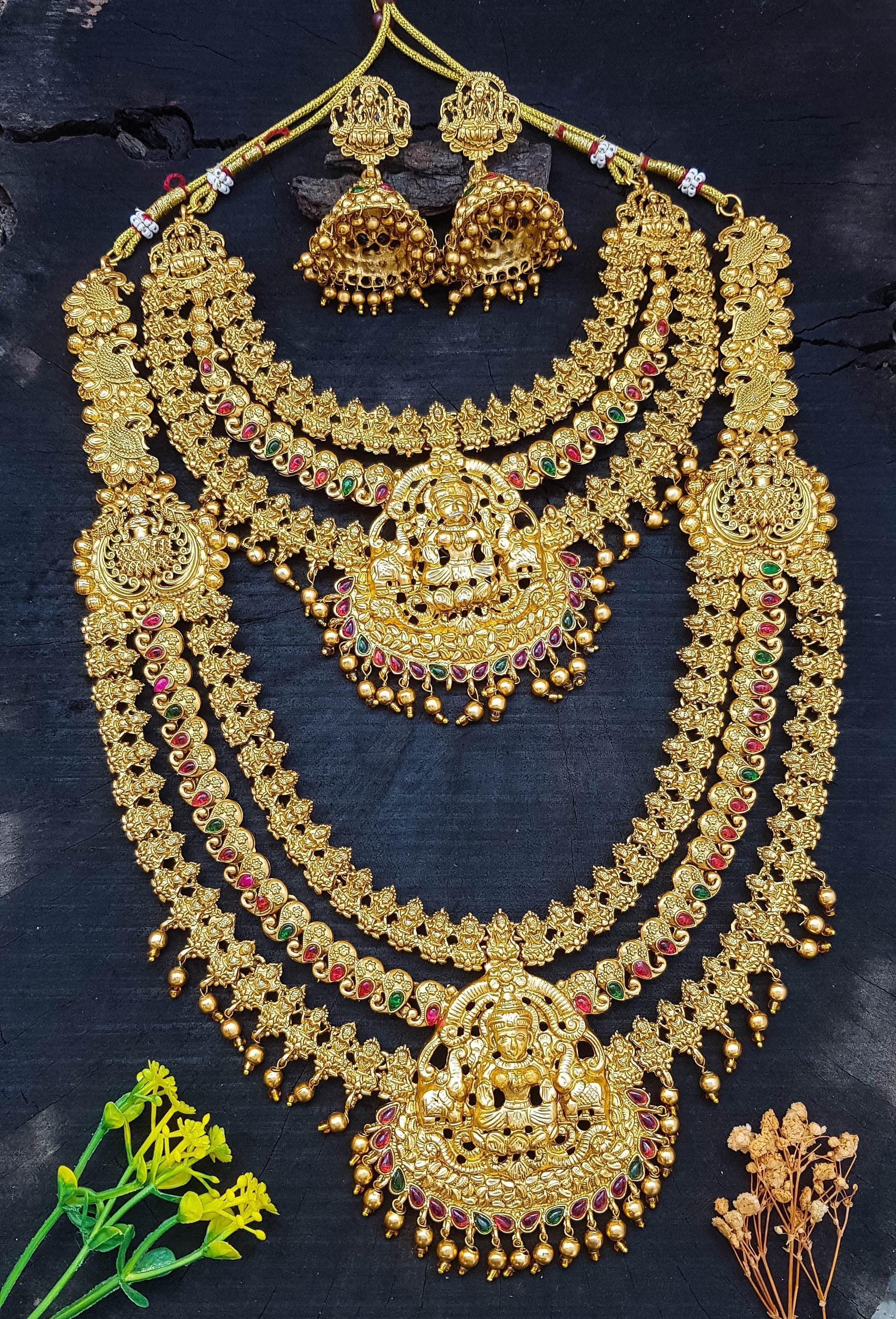 • Experience the luxury of antique gold with our best selling necklace combo set! This stunning set is not only a great value for money, but it also boasts a realistic gold finish that will have you looking and feeling like royalty. Elevate your style and make a statement with our Antique Finish Best Seller Necklace Combo Set 13260N.