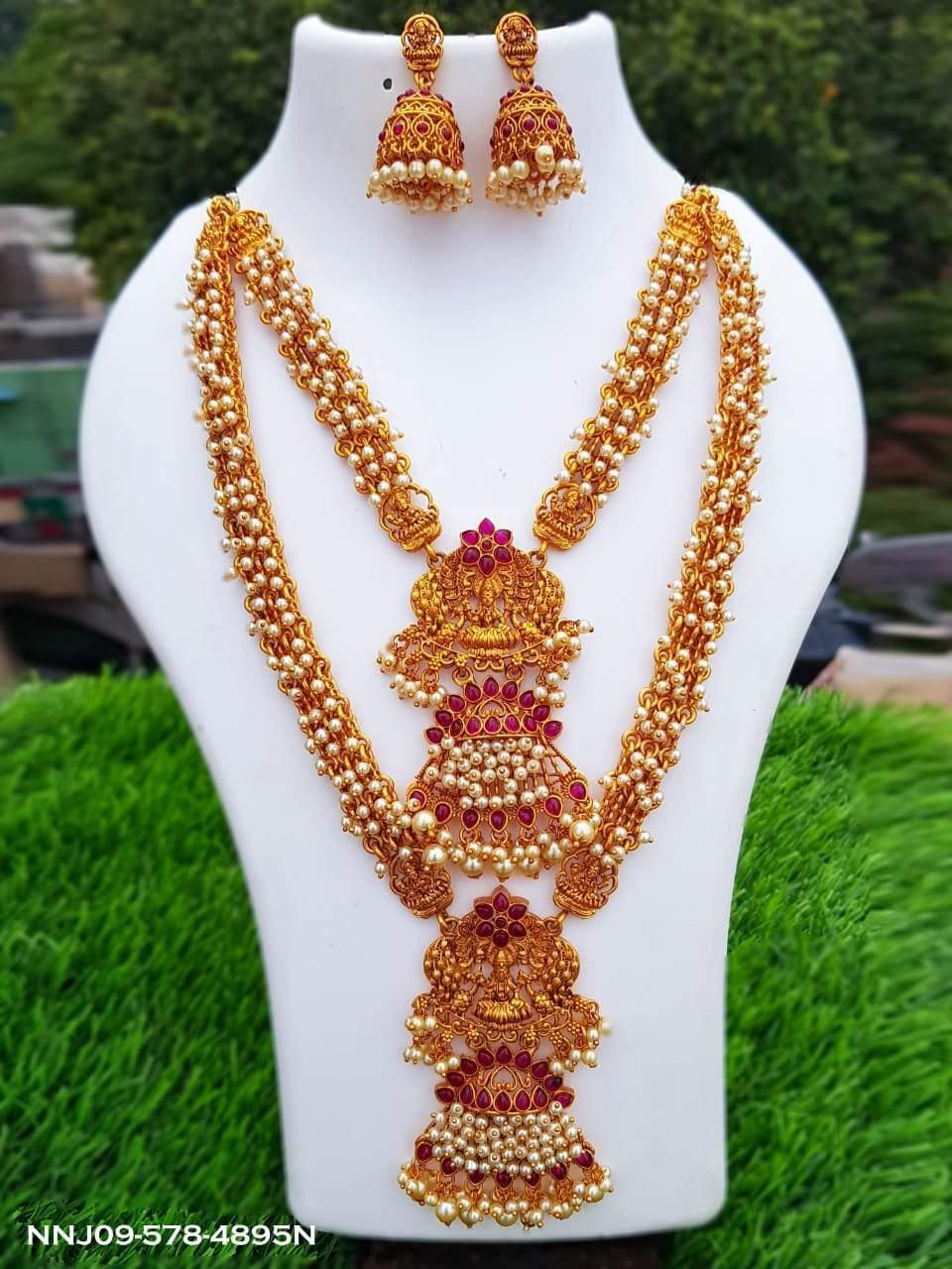 This Antique finish Designer Combo short and long necklace set is the perfect combination of class and style. Crafted in a beautiful antique finish, this set makes for a perfect accessory for any formal or casual occasion.