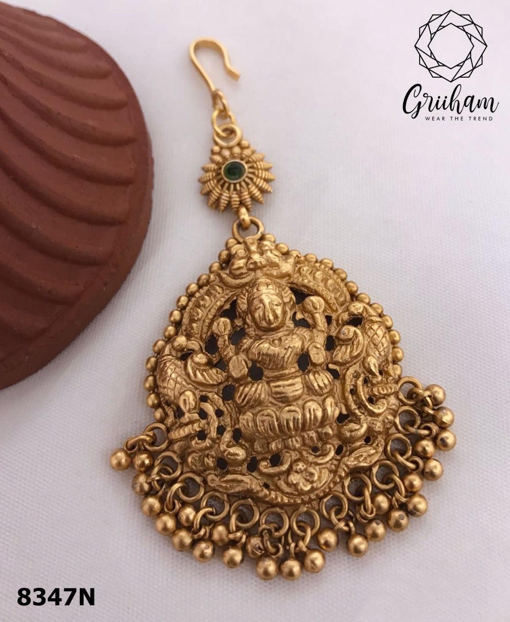 Antique Gold Finish Hair Accessory Damini/Tikka Bridal Wear 8347N