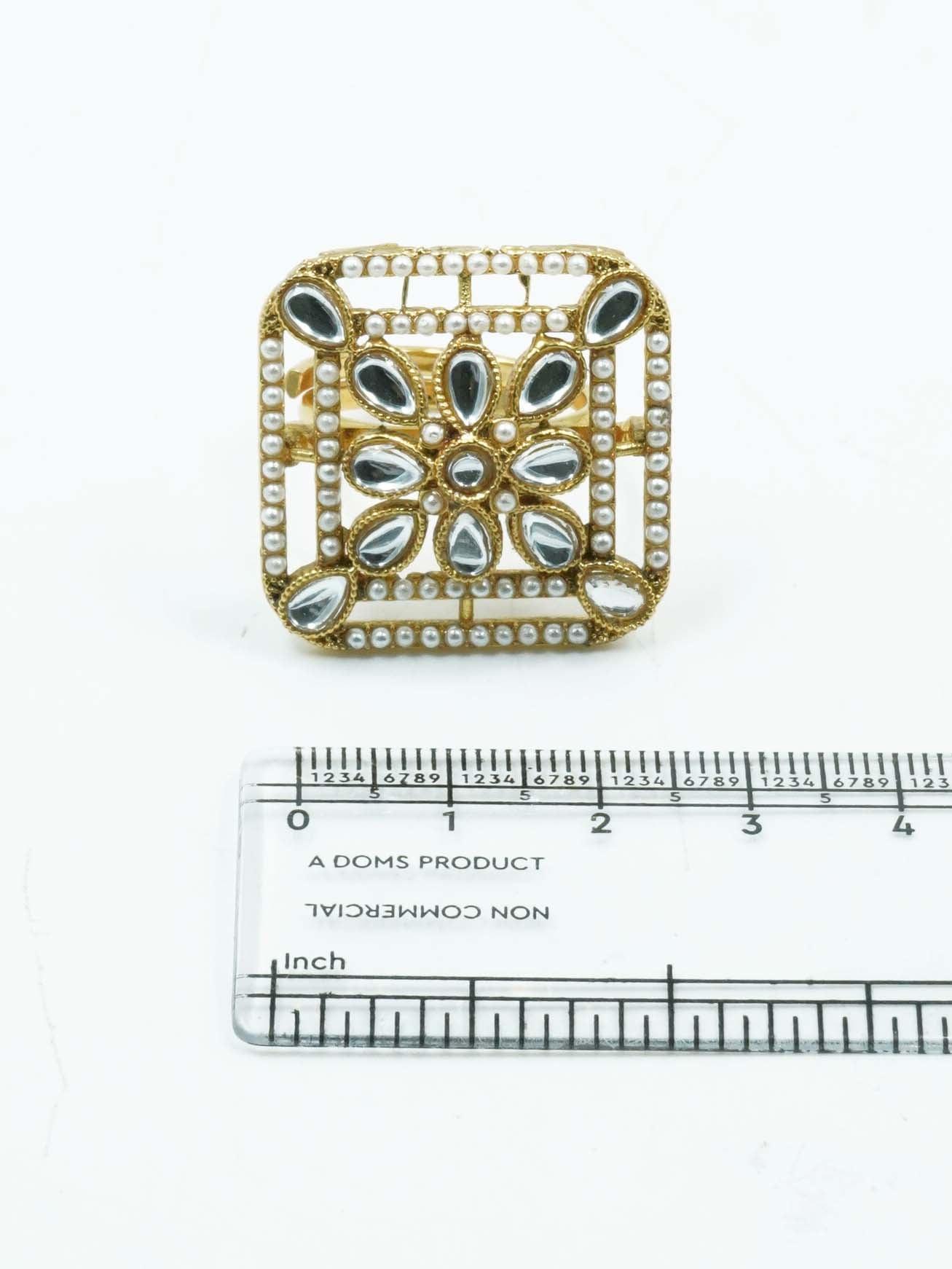Antique Gold Plated Adjustable Size Designer Finger ring with Stones