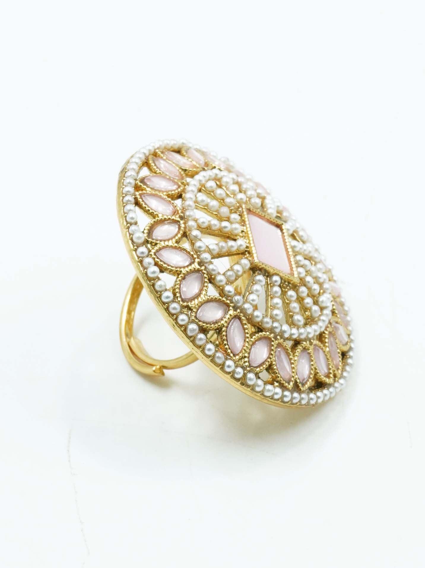 Antique Gold Plated Adjustable Size Designer Finger ring with Stones