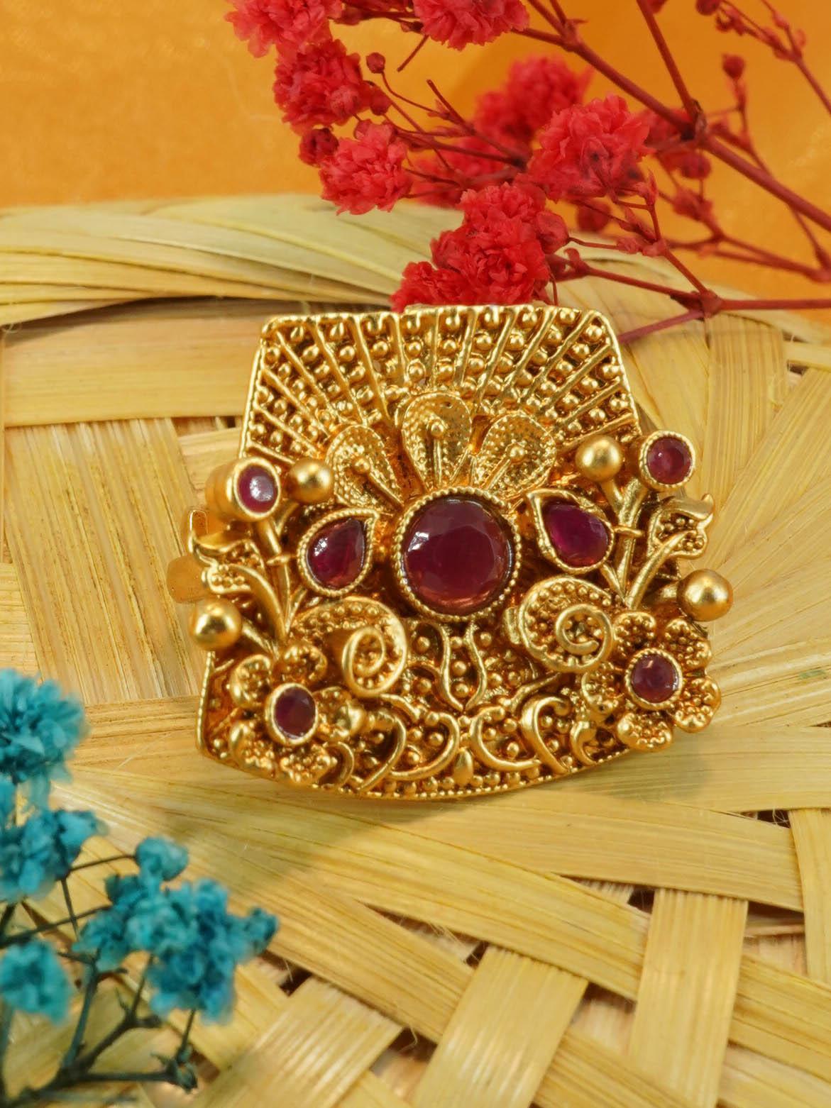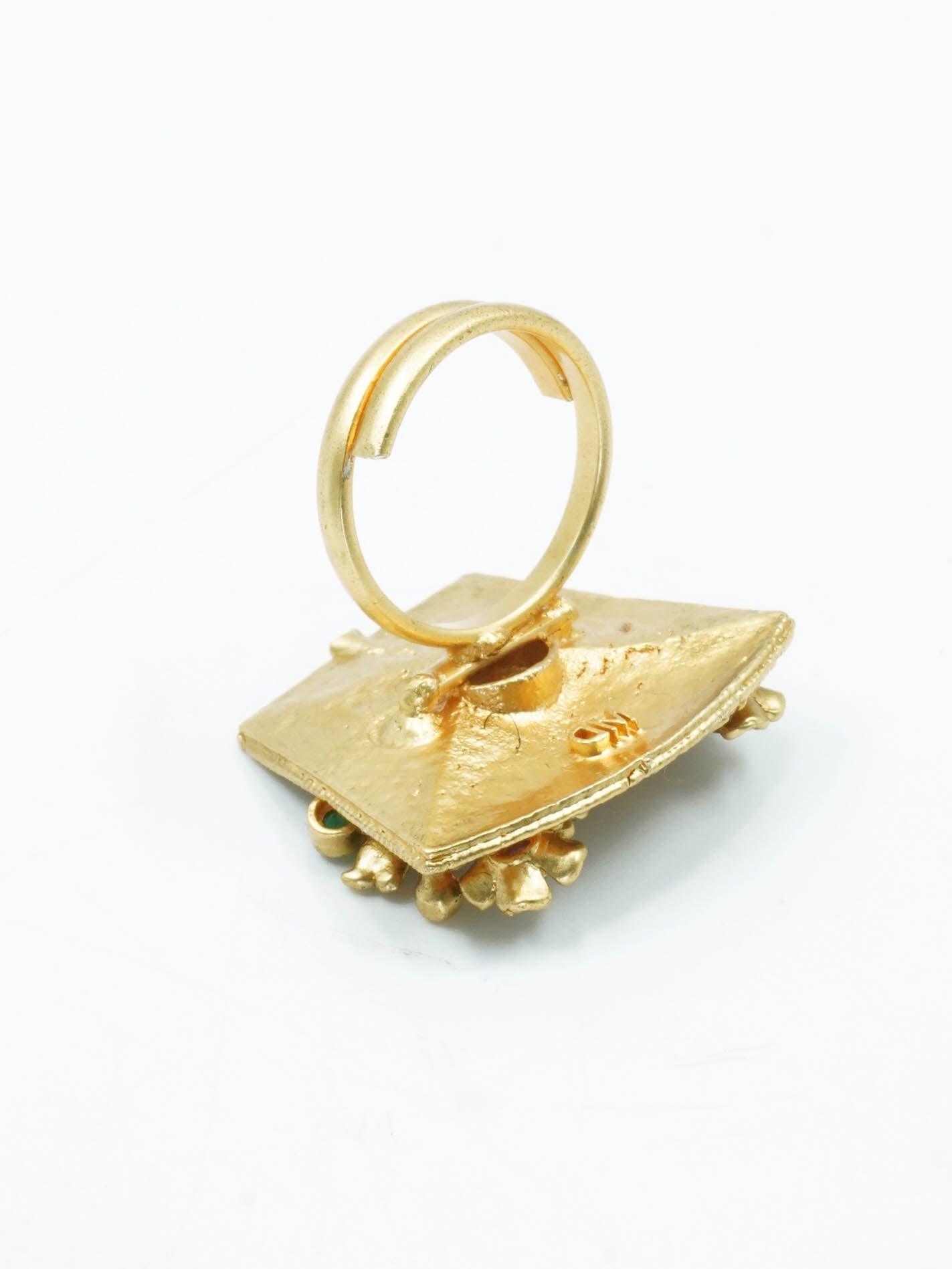 Antique Gold Plated Adjustable Size Designer Finger ring with Stones