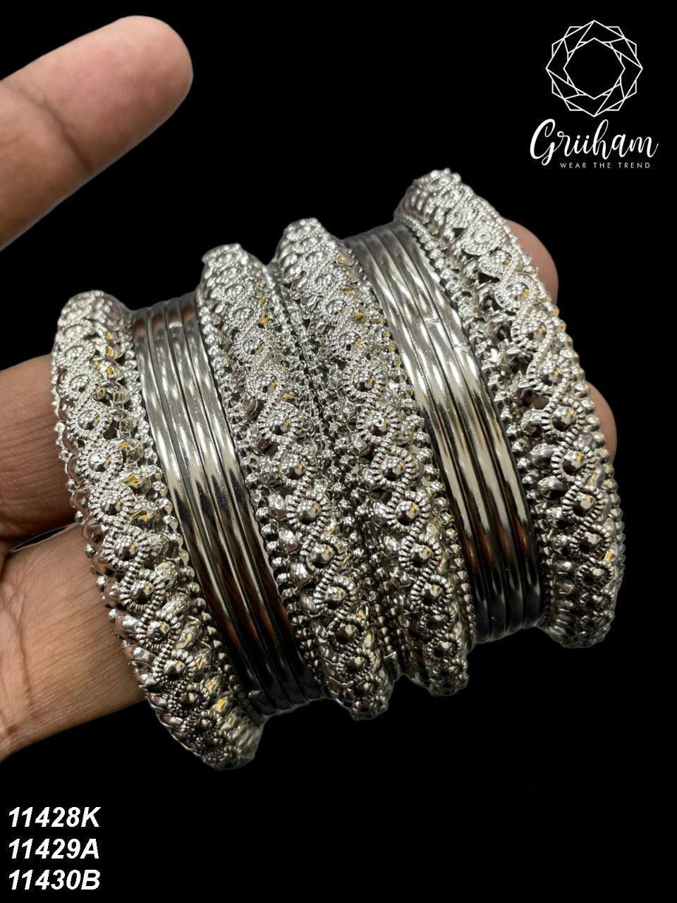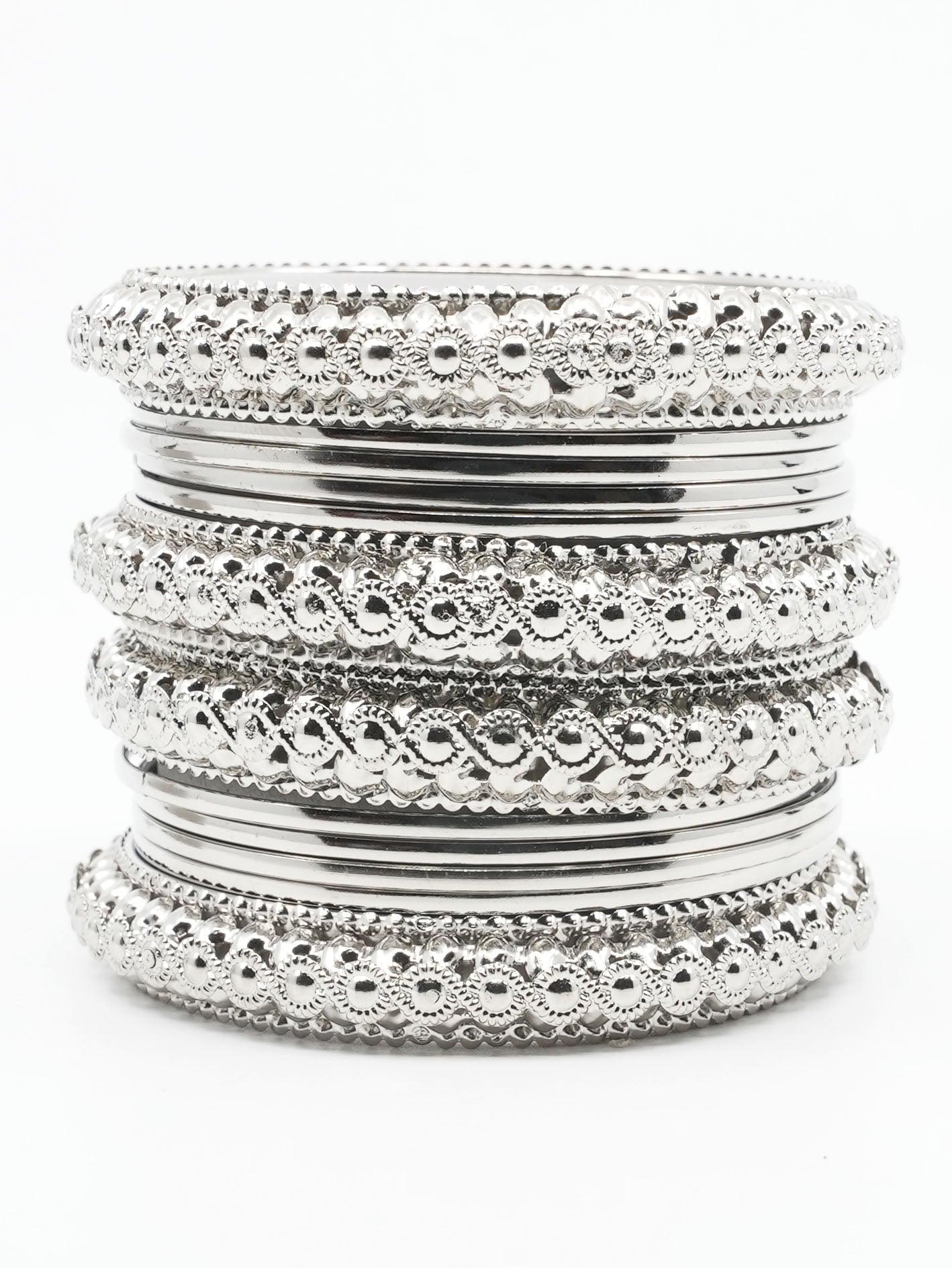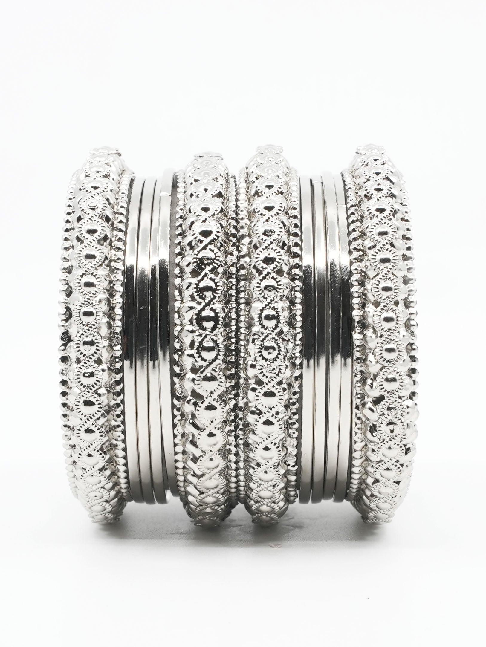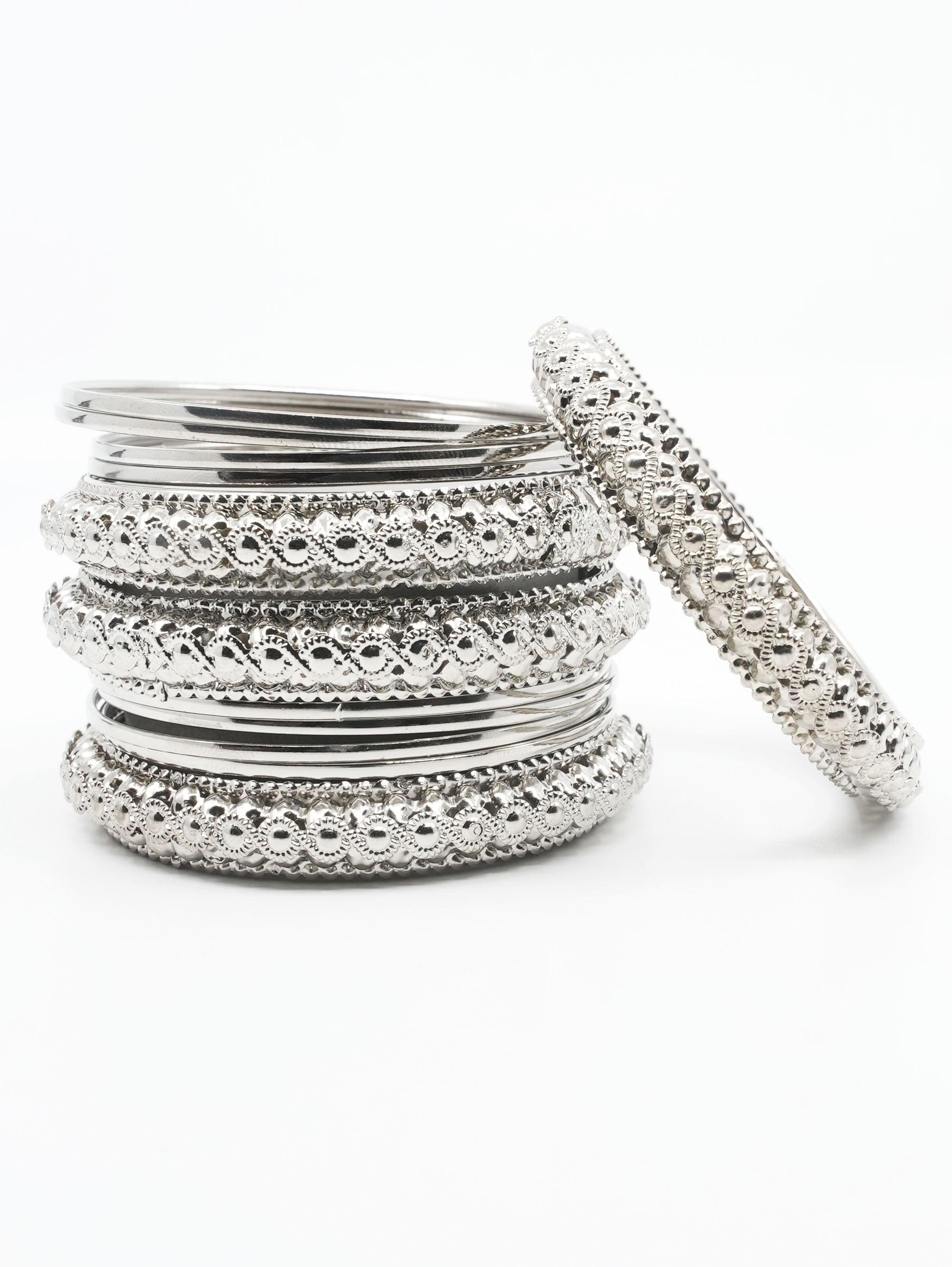 Fancy Silver plated Set of 12 Bangles
