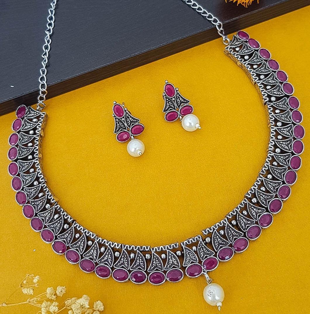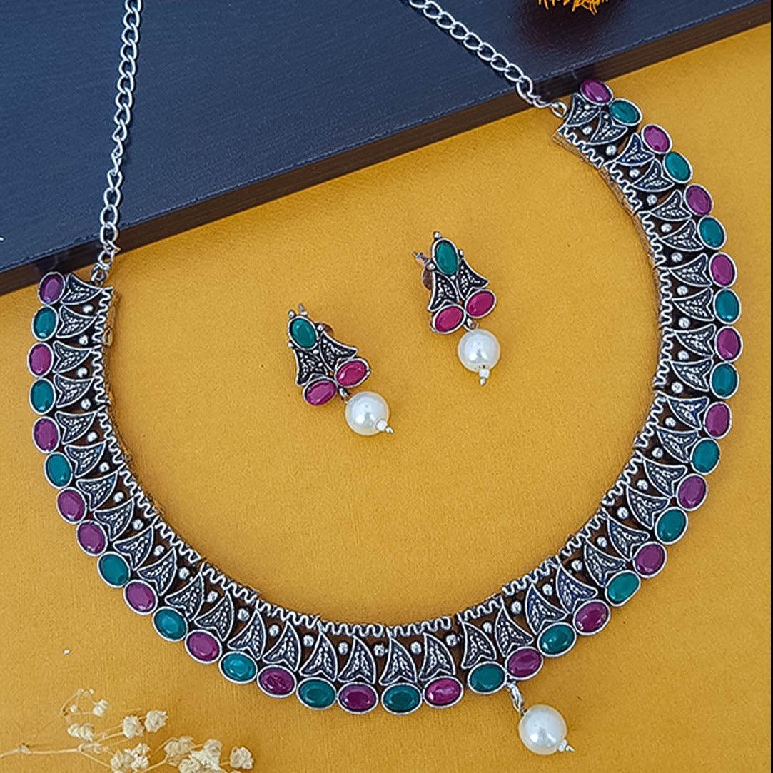 German Silver Plated oxidised Necklace set 12438N