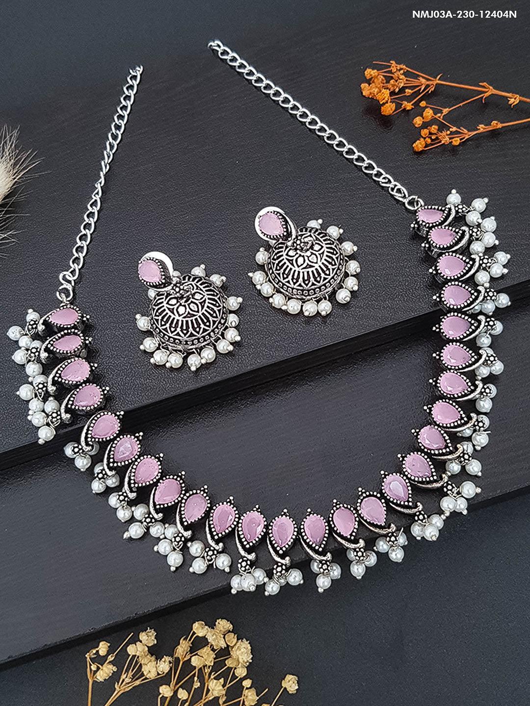 German silver Oxidised Navratna Necklace Set