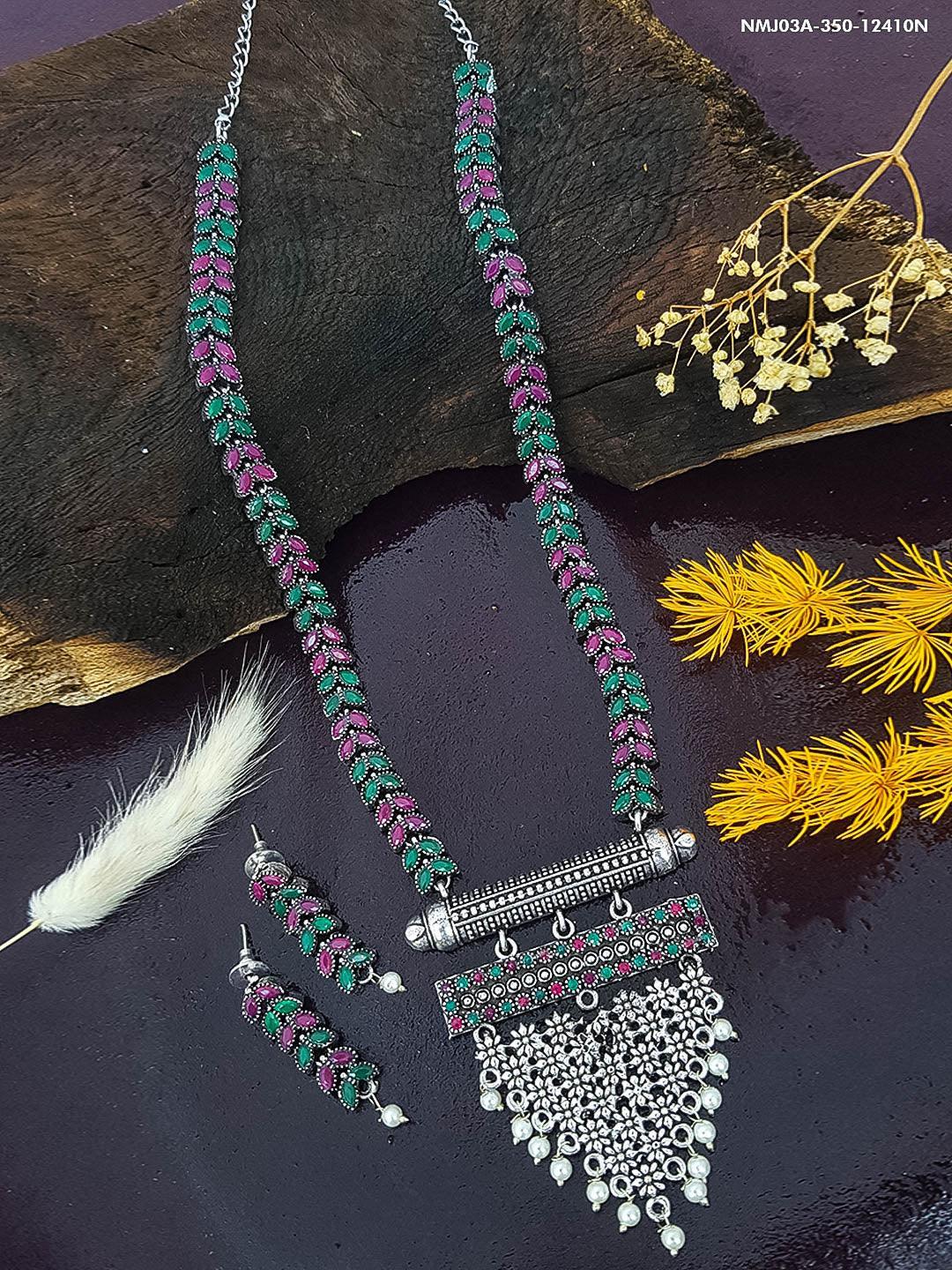 German Silver Plated oxidised Long multicolor stone Necklace set 12410N