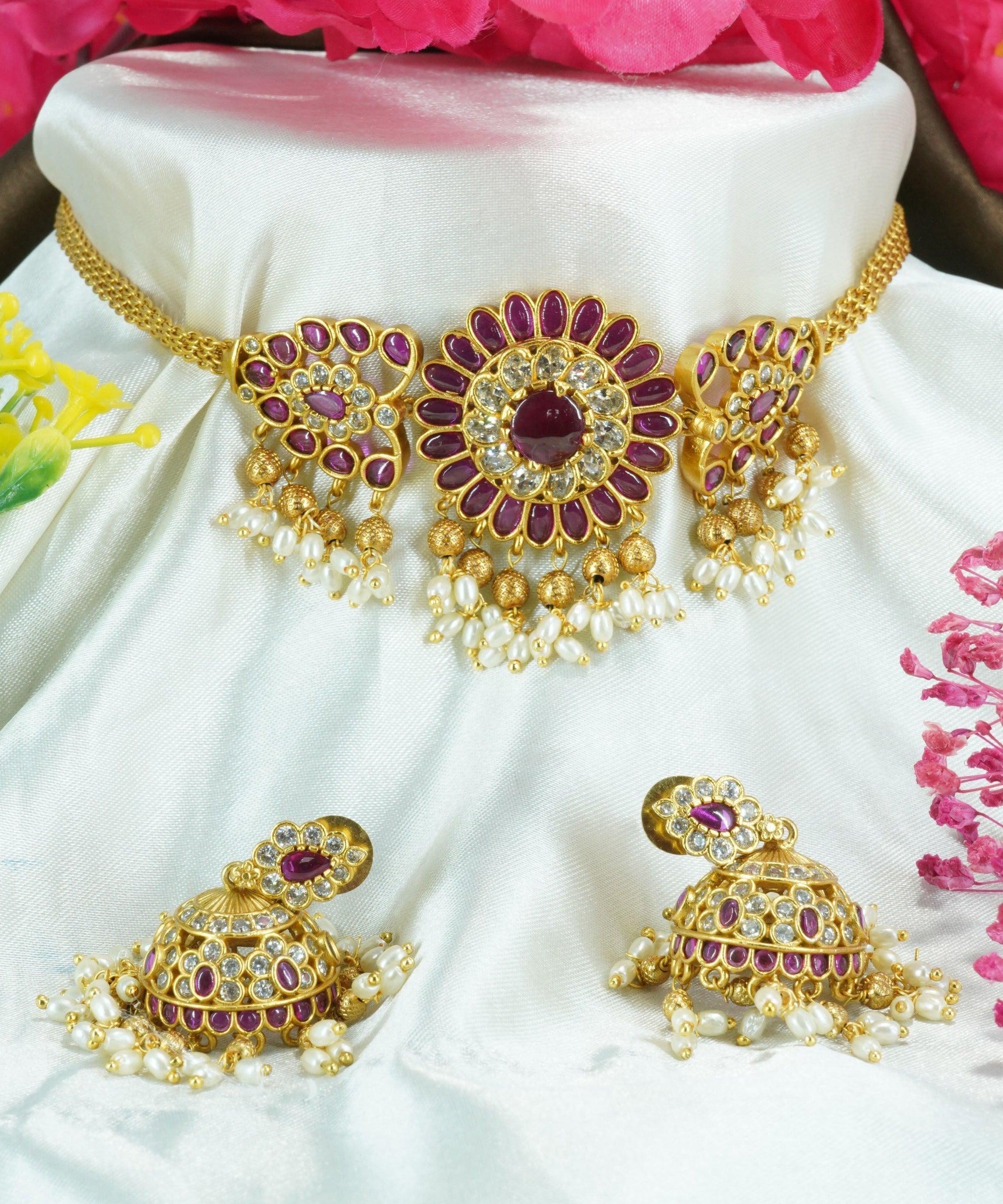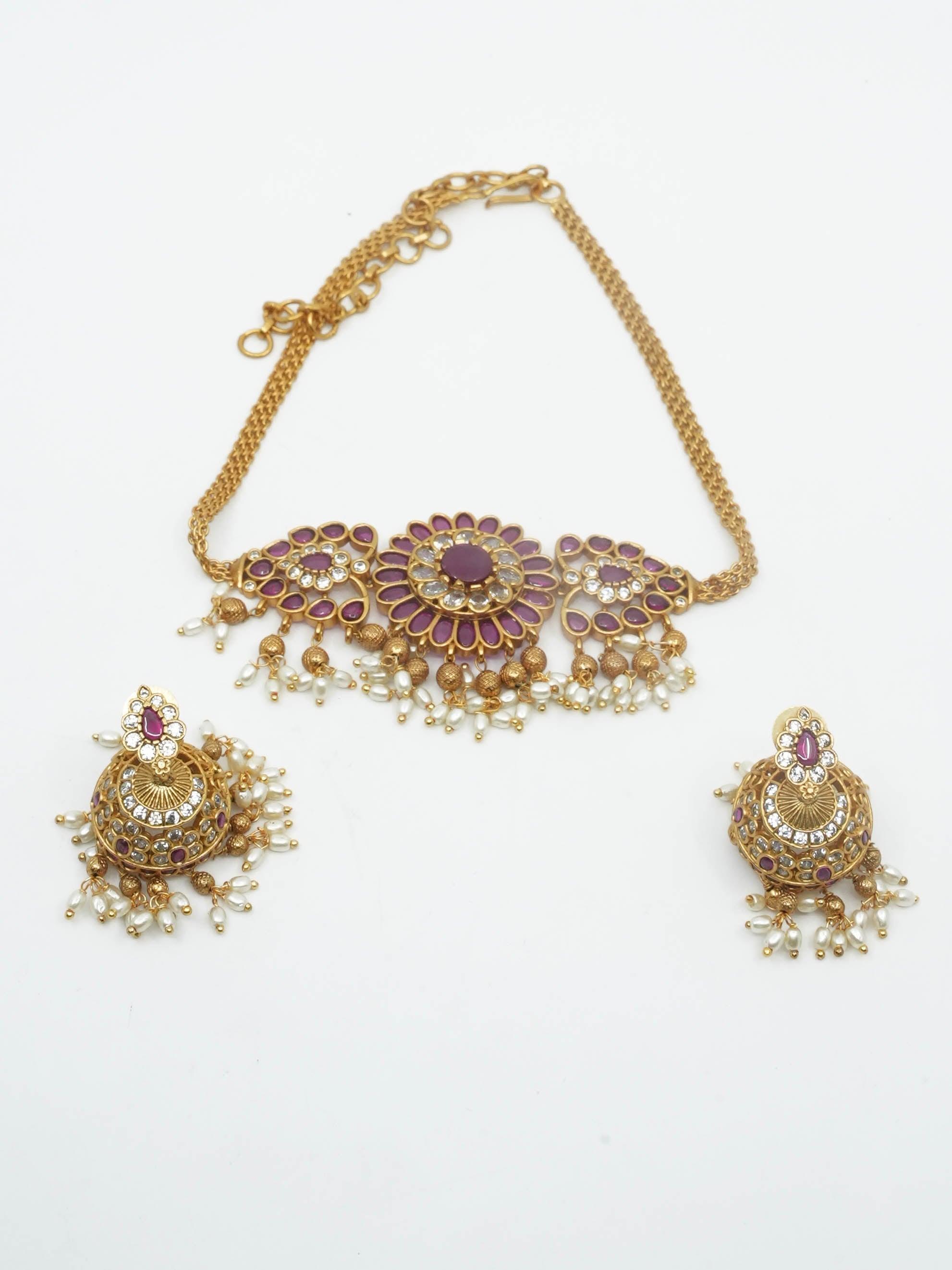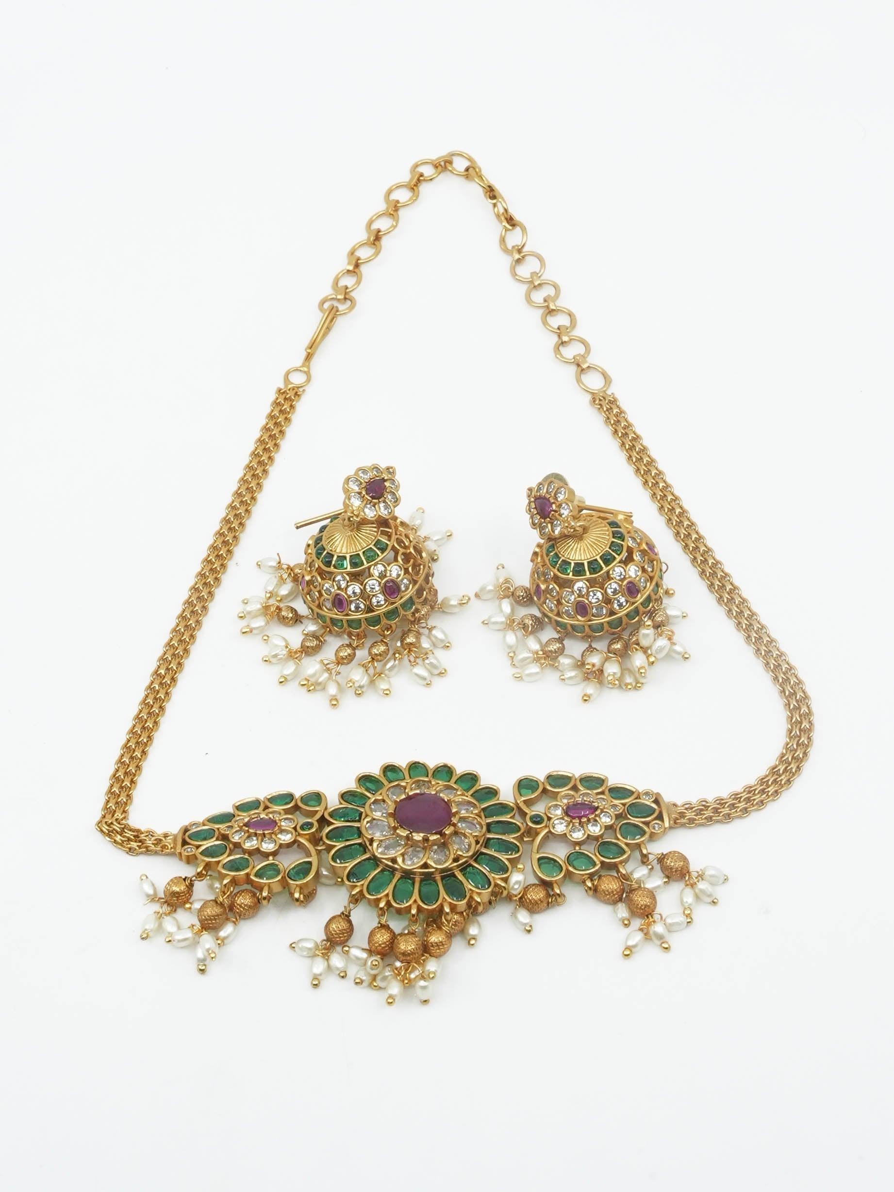 Gold Plated Choker Necklace Set multicolor - Griiham Gold Plated Choker Necklace Set multicolor - Griiham