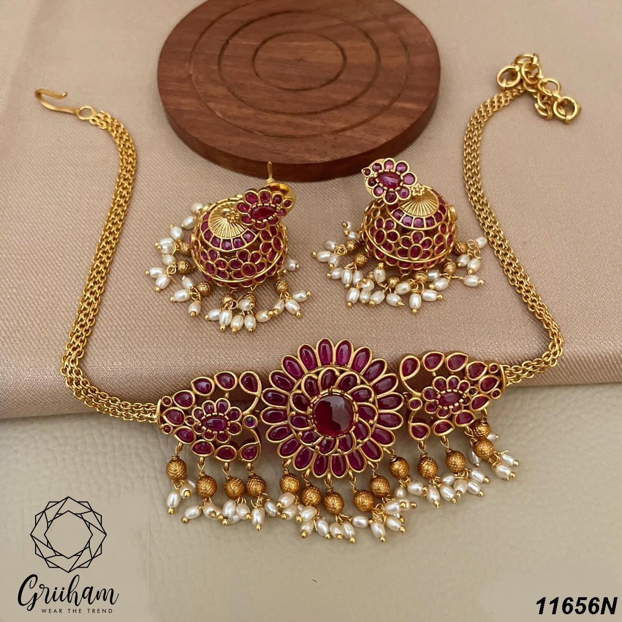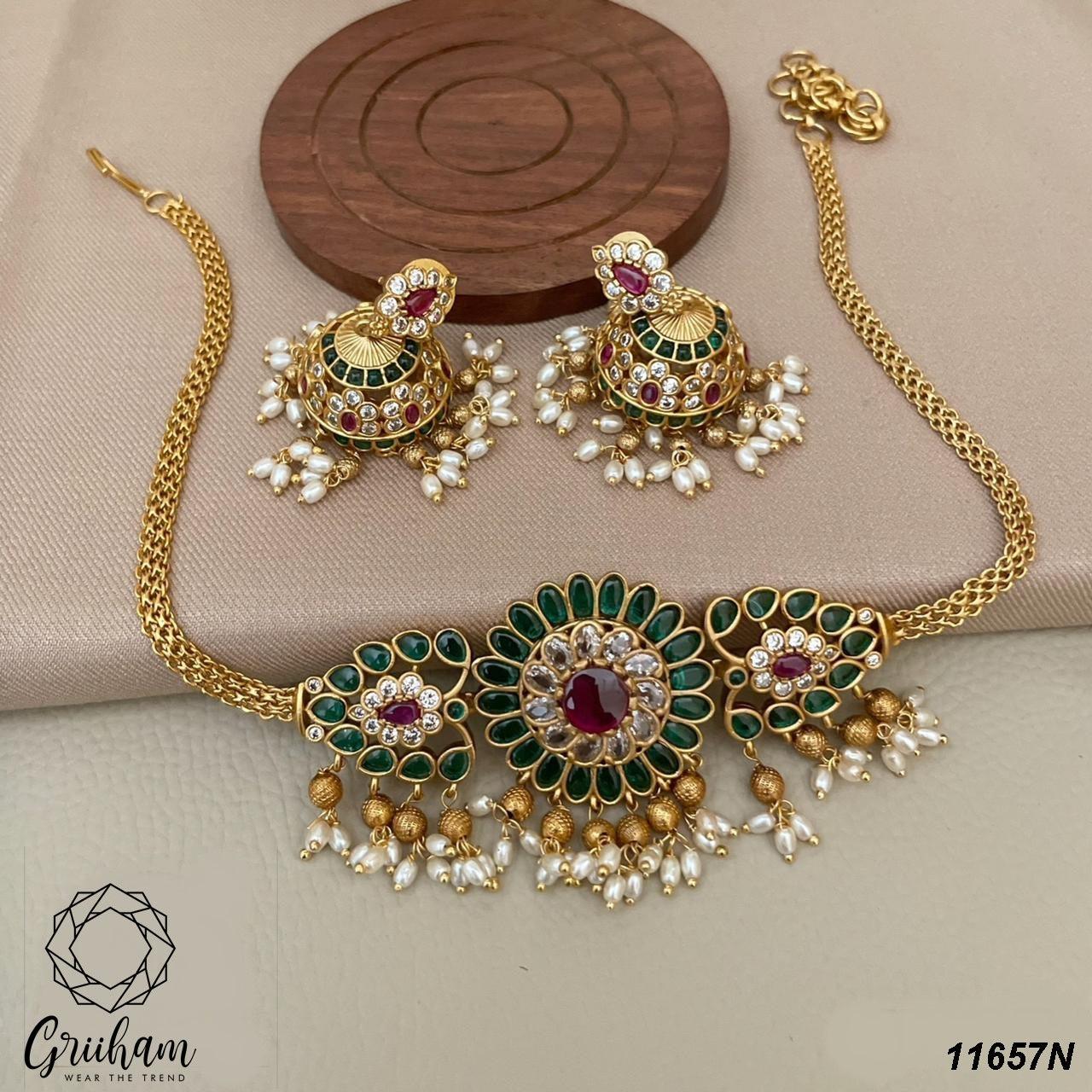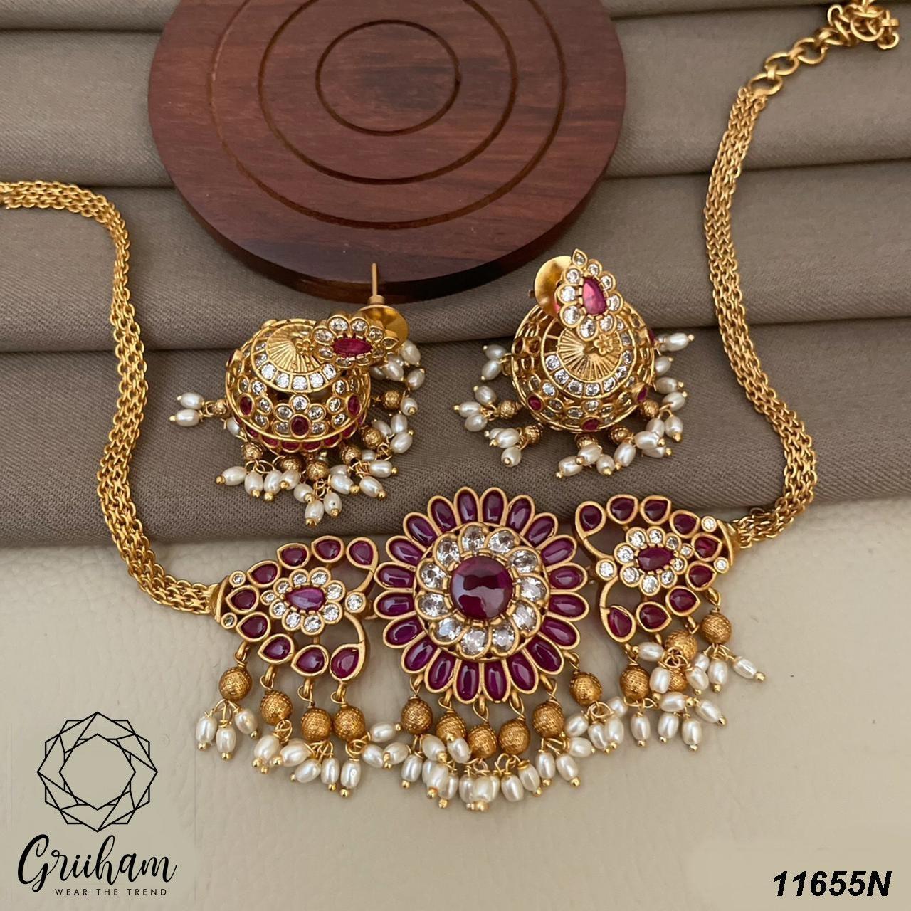 Inclusion : 1 Necklace & 1 pair of earrings. Necklace with back thread